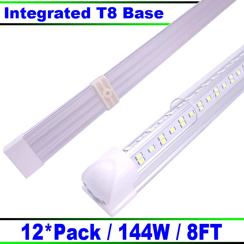 FAST DELIVERY - Ship from New Jersey or Los Angeles Warehouse via FedEx , 3-7 Days Delivered Your Door . SCIENTIFIC DESIGN - 8Ft LED Shop Lights Fixture is Made of 6500K Cold White SMD2835 LED Chip ,Plastic Clear Cover , Aluminum Bracket Housing ,and AC85-277V Constant Current Driver . It can work in -68F to 120F Temperature Conditions EASY INSTALLATION - The Integrated Tube Fixture Can be Install on Wall or Ceiling ,Easily Replace Traditional Fluorescent Tube Bulb . Plug and Play , Free Accessories (Power Cords, Connector , Extension Cords , Clip and Screw ) Come with Tube Lights Together WIDE APPLICATION - Linkable 8Ft Bulbs Widely Used in Garage Ceiling , Barbershop , Schools, Hospitals Basement , Factory Warehouses , Supermarkets Cooler Door , Offices, Shops,Hotels, etc 12 Pc LED Linkable Shop Light 8Ft 144W Daylight Fixture V-Shape 6500K Cold White FAST DELIVERY - Ship from New Jersey or Los Angeles Warehouse via FedEx , 3-7 Days Delivered Your Door . SCIENTIFIC DESIGN - 8Ft LED Shop Lights Fixture is Made of 6500K Cold White SMD2835 LED Chip ,Plastic Clear Cover , Aluminum Bracket Housing ,and AC85-277V Constant Current Driver . It can work in -68F to 120F Temperature Conditions EASY INSTALLATION - The Integrated Tube Fixture Can be Install on Wall or Ceiling ,Easily Replace Traditional Fluorescent Tube Bulb . Plug and Play , Free Accessories (Power Cords, Connector , Extension Cords , Clip and Screw ) Come with Tube Lights Together WIDE APPLICATION - Linkable 8Ft Bulbs Widely Used in Garage Ceiling , Barbershop , Schools, Hospitals Basement , Factory Warehouses , Supermarkets Cooler Door , Offices, Shops,Hotels, etc