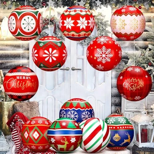 12 Pcs 12" Large Light Up Inflatable Christmas Ball PVC Inflatable Elegant