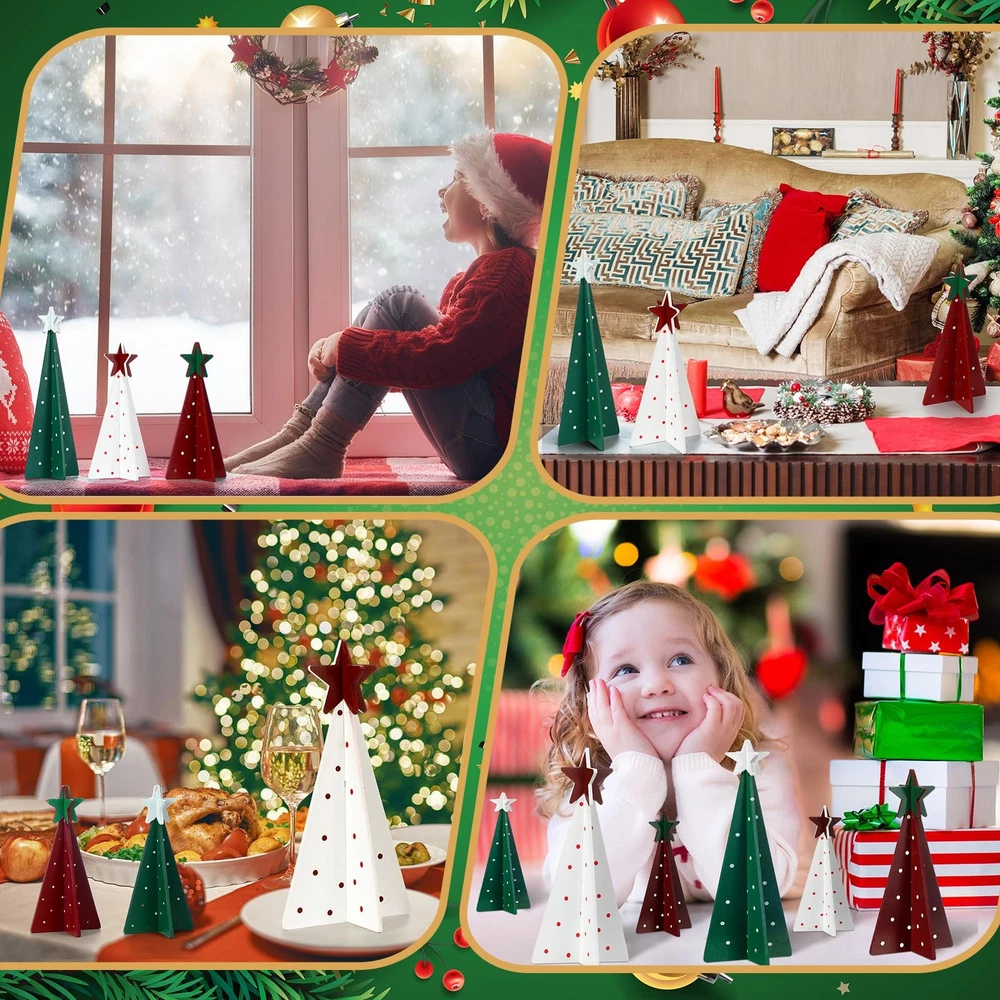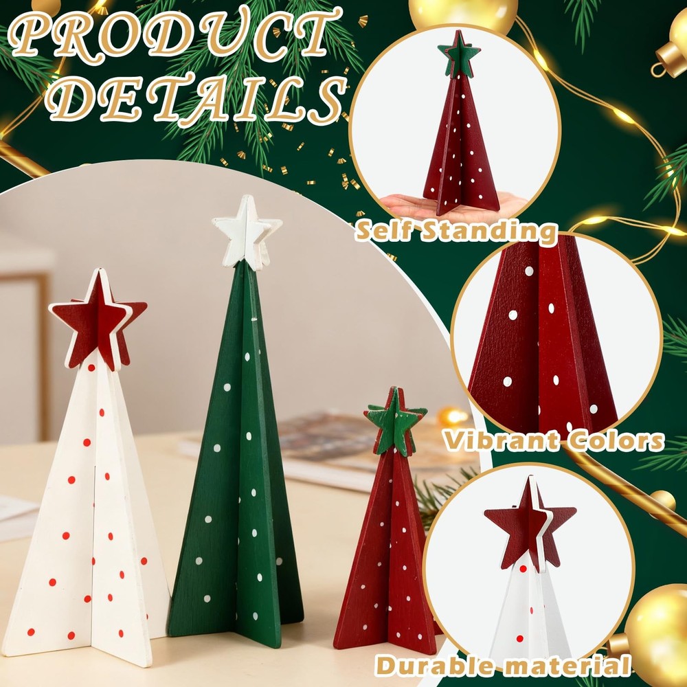 Features: Ideal gift choice: Rich in quantities and reliable in quality, our Christmas tree sign can be sent to your friends, colleagues, family members, neighbors and so on, just an easy way to invite them to spend a happy festival together. Easy to use: Having certain thickness, our Christmas tabletop centerpiece can be stood in your tiered tray simply, or you can put them next to other items, no other tools needed, saving your time and energy. Specifications: Material: wood Color: as shown tin the pictures Size: 8.07 x 4.72 inches/ 20.5 x 12 cm, 6.89 x 4.33 inches/ 17.5 x 11 cm and 6.1 x 3.94 inches/ 15.5 x 10 cm Package includes: 12 Sets table top Christmas trees Notes: Manual measurement, please allow slight errors on size. The color may exist a slight difference due to different screen displays. Pointed parts included, please ensure that children use them under the supervision of adults Free Standing Christmas Tree: Each set contains 12 wooden tree pieces, and 2 pieces can be combined to form a complete tree, for a total of 6 of double side printed wooden Christmas tree, sufficient quantities and various styles can meet your decoration needs simply Noticeable Sizes: these Christmas table signs are different in sizes, such as 8.07 x 4.72 inches/ 20.5 x 12 cm, 6.89 x 4.33 inches/ 17.5 x 11 cm and 6.1 x 3.94 inches/ 15.5 x 10 cm, different sizes will have different decoration effects Spice up Your Home: the table top Christmas tree adopts the shape of Christmas, along with the patterns of white color, which are very in line with the theme of Xmas, adding an intense festive breathing in your home, just enjoy the happy time they bring to you Built to Long Last: formed by quality wood with clear printing, our wood Christmas tree is solid and serviceable, not easy to break or deform, the bright color is not easy to fade, have no bad smell, carefully polished and there is no burr, you can use with confidence Extensive Scope of Use: our rustic Christmas centerpiece can not only suitable for you to place at your tiered tray, but also can be applied for table, desk, mantel, book shelf and other places, they will create nice festival atmosphere and make you happy