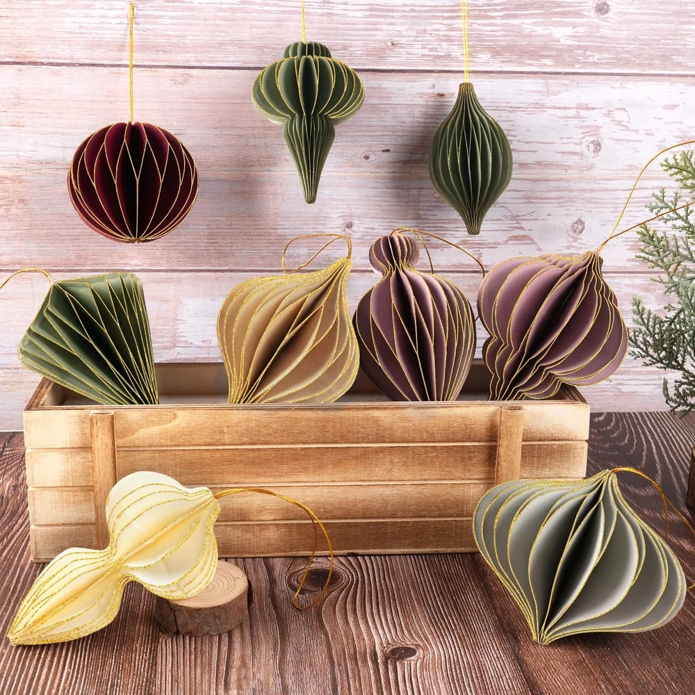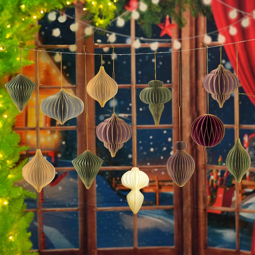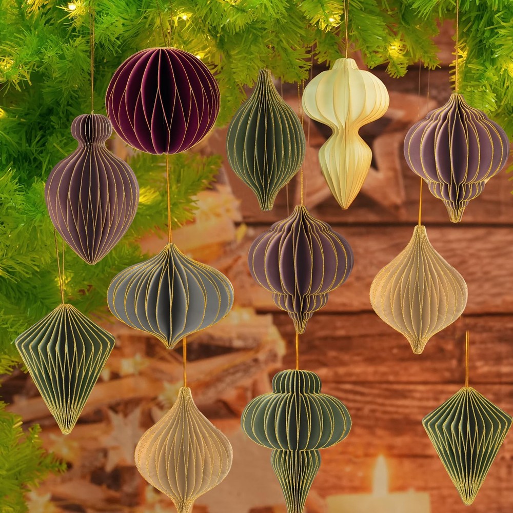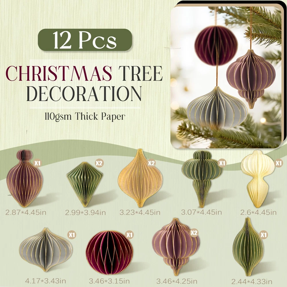 12 Pcs Christmas Paper Honeycomb Ornaments for Tree, 3D Glitter Edge Paper Honey Christmas Honeycomb Ornaments Set: You’ll receive 12pcs honeycomb paper ornaments for christmas tree in red, green,pink,brown and gray, featuring 9 unique shapes and pre-attached hanging strings. This green and red christmas ornaments set brings nostalgic holiday cheer and vibrant color to your Christmas tree, windows, and festive displays Exquisite Glitter Accents: Measuring approx 3"x3.94", these paper honeycomb lanterns feature 9 different shapes—from lanterns to balls—with shimmering glitter edges that sparkle under holiday lights. The mix of traditional forms and vintage colors adds texture and dimension, helping you create a timeless Christmas look full of warmth and whimsy Easy to Assemble & Store: These honeycomb christmas decorations open and close effortlessly. No tape or glue required, simply snaps two sides of the hanging christmas decoration together with hidden magnets inside, mix and match an assortment of impressive Christmas decorations as you like. After the holidays, fold them flat again for compact storage and reuse year after year Durable and Reusable: Crafted from high-quality 110gsm paper, these decorative hanging ornaments are durable and lightweight, not easy to break, deform, or wear out when folded, cut, or creased even after multiple uses. Perfect for hanging on xmas trees, windows, doors, mantels, ceilings, or fan handle, offering long-term value and dependable durability for all your festive seasons Versatile Use: Ideal for Christmas tree decor, ceiling christmas decorations, New Year party decorations, snow white party birthday party supplies, winter wonderland party decorations, holiday home party decor, these honeycomb christmas tree ornaments work beautifully across various settings. Use them at home, in the office, or as a distinctive and thoughtful gift for friends, colleagues, and family for a nostalgic and joyful touch Bring nostalgic charm to your holiday décor with this Christmas honeycomb ornaments set! Featuring 12 pieces of paper ornaments in vintage red, green,pink, brown and gray, these christmas decorations for home come in 9 unique vintage-inspired shapes, from lanterns to festive balls, all accented with shimmering glitter edges. Each honeycomb ball lantern is equipped with a hanging string, ready to transform your Christmas tree, windows, ceilings, or mantels into a magical winter wonderland filled with color, texture, and joy. Crafted from durable 110gsm paper, these reusable honeycomb hanging decorations are lightweight yet sturdy, designed to last season after season. Built-in magnets make assembly quick and hassle-free—just unfold, snap together, and hang. After the festivities, they fold flat for compact storage. Whether for your home, office, or as a thoughtful holiday gift, these neutral christmas ornaments are a delightful addition to Christmas parties, New Year’s celebrations, or winter-themed events. Shipping We offer FREE shipping on all orders! We ship within Three business days of payment, usually sooner. We use a selection of shipping services such as UPS, FedEx, USPS etc. We only ship to the lower 48 states, no APO/FPO addresses or PO Boxes allowed. Local pickups and combined shipping options are not provided at this time. Return You can return a product for up to 30 days from the date you purchased it. Any product you return must be in the same condition you received it and in the original packaging. Please keep the receipt. Payment We accept payment by any of the following methods: PayPal Please pay as soon as possible after winning an auction, as that will allow us to post your item to you sooner! Feedback Customer satisfaction is very important to us. If you have any problem with your order, please contact us and we will do our best to make you satisfied. Contact Us If you have any queries, please contact us via ebay. We usually respond within 24 hours on weekdays. Please visit our eBay store to check out other items for sale! Thank you for shopping at our store.