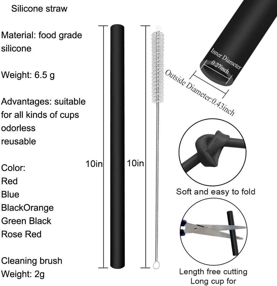 12 Pcs Eco Friendly Silicone Straws with 2 10 inch, Multicolor, Pure Color B Product Details Material: Silicone Color: Multicolor, Pure Color B Size: 10 inch Special Feature: Dishwasher Safe Brand: HT-INTL Unit Count: 1 Count Number of Items: 12 Manufacturer: HT-INTL Package Dimensions: 10 x 5.12 x 0.39 inches Item Weight: 3.84 ounces Country of Origin: China Item model number: 1 ULTIMATE VALUE STRAW SET-This set includes 12 vibrant, 10-inch silicone straws and 2 cleaning brushes, giving you everything you need for smoothies, milkshakes, cocktails, and more. Perfectly compatible with Yeti, Ozark, and Rtic Tumblers, it’s a versatile addition to your drinkware! PREMIUM QUALITY & ECO-FRIENDLY-Ditch the disposable straws and switch to these durable, reusable silicone straws made from high-quality, BPA-free, non-toxic materials. They’re safe, eco-friendly, and built to last, offering a healthier and more sustainable choice for you and the planet. PORTABLE & CONVENIENT-On the go? No problem! These straws are compact enough to fit in your bag or pocket for easy carrying and storage. Plus, we’ve included bonus cleaning brushes to keep them fresh and ready to use anytime, anywhere. PERFECT FOR ANY OCCASION-Whether it’s a family gathering, outdoor picnic, hiking trip, or even the office, these silicone straws are designed to meet all your needs. With a variety of colors, they’re practical, fun, and convenient for any occasion! VERSATILE FOR ANY HOT AND COLD DRINK-These silicone straws can handle everything from icy cold drinks to piping hot coffee, with a heat tolerance from -40℉ to 230℉. Safe, durable, and reusable—ditch the single-use straws and enjoy a worry-free, eco-friendly sip every time!