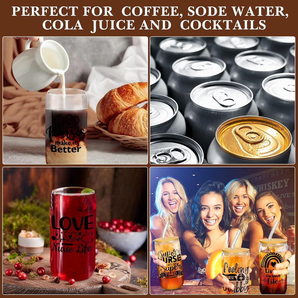 Menu Other Items Feedbacks About Us Contact Us Add To Favorites 12 Pcs Nurse Gifts for Women 16 Oz Can Shaped Glass Cups with Lids and Straw Funny Nurses Week Appreciation Gifts Nurse'S Day Gift for Christmas Graduation Birthday School Supplies (Exquisite) Nurse Gift for Women: express your sincere appreciation and care for the tireless dedication and hard work of the nurses in your life with this set of 16 oz glass jar, a meaningful and practical gift idea for nurses, doctors, parents, colleagues, friends 16 Oz Glass Set: this nurse appreciation gift set for women includes 12 can shaped glass cups featuring leak-proof bamboo lids with airtight silicone rings, reusable glass straws and straw brush for easy cleaning; Each coffee cup measures 2.6 in/ 6.6 cm in diameter, 5.75 in/ 14.6 cm in height, easily holds your favorite beverage like soda, beer, coffee, honey, jam or create a surprising presentation for your cocktail recipe Reliable Material: the nurse graduation tumbler is made of quality thick glass material, which can withstand temperature changes from -20 to 130°C, not easy to break, suitable for hot and cold drinks; The thickened bottle bottom makes it stable and not easy to dump; Mason jar wide mouth is smooth and can be safely applied in daily life Inspirational Quotes: our thank you nurse week gifts features funny heartwarming quotes like, [Best Nurse Ever], [Nursing Is a Work of Heart], etc.; Great for nurse graduation and Nurse Day gift, bringing a warm daily reminder to your loved one and a cherished keepsake that she can enjoy for years to come Wide Application: you can gift these cute nurse mugs to your favorite nurses on Nurses Week, Nurses Day, Nurses Graduation Day, Nurses Retirement Day, Nurse Practice Day, Nurse Practitioner, Thanksgiving Day, Christmas, Birthday Party, New Year or any other day or family members who are nurses, express your gratitude and care to them Product Description Item Specification Reusability Reusable Unit Count 12.0 Count Style Exquisite Number of Items 12 Pattern Letter Print Material Silicone Capacity 12 ounces Country of Origin China Theme Christmas Item Weight 7.83 pounds Shape Round Material Feature Insulated Age Range (Description) Adult Recommended Uses For Product Nursing Occasion Birthday Included Components Straw Special Feature Leak Proof Product Dimensions 2.95"W x 5.47"H Product Care Instructions Machine Wash, Hand Wash Only Dimensions Shipping Returns Additional Info Product Dimensions: 5.47 "h x 2.95 "h. Weight: 7.83 lb Fast shipping is very important for us. Our standard shipping service is FREE. Your order will be shipped within 1-3 business days upon full payment received. Most items are delivered within 3-5 business days, however, please allow 3-10 business days. We are shipping only to USA. We only ship to the confirmed Paypal address. We reserve the right to cancel any order for any reason at any time. We are not responsible for undeliverable addresses. We offer a 30 day return policy from checkout winning date. Your satisfaction is guaranteed! If for any reason you are unhappy with your item, just return it within 30 days for a full refund, minus shipping cost. Please contact us prior to initiating a return so that we can issue you a refund authorization. Items defective upon receipt must be packaged in their retail packaging as if new and returned with a detailed description of the problem. Return shipping fees are not refundable. We reserve the right to decline any returns if the above guidelines are not followed. All of our items, unless otherwise stated, will only run on 120 volts. Please check to make sure your country complies with these specifications. If you have a problem or question regarding your transaction please contact us before leaving any type of feedback. We will work with you to resolve any problem you may have.
