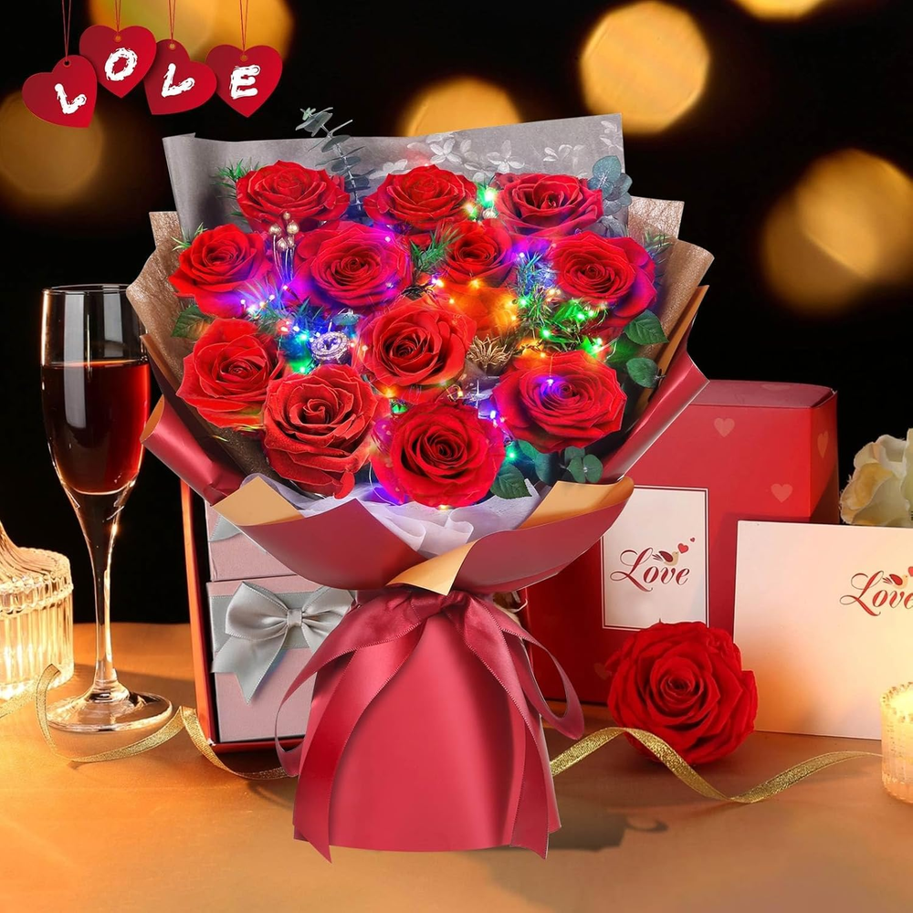 Store New Arrivals Add to Favorite View Feedback Contact Fast deliveries to the customer's home Quality customer service John Make the customers happy! 12 Pcs Preserved Red Roses Bouquet, Real Roses That Last Years, Valentine'S Day Gifts for Wife Girlfriend, Romantic Anniversary Birthday Gift for Her Mom, One Dozen Forever Flowers for Delivery Description 100% Real Roses That Last Years: Made from natural real roses through a unique preservation process. These eternal flowers maintain their freshness, beauty, and soft touch for 3-5 years without any watering or maintenance. The long-lasting alternative to fresh flowers. Rosas Reales de Larga Duración: Estas rosas naturales conservan su frescura y suavidad por años sin necesidad de agua ni cuidados. Es el regalo eterno ideal para San Valentín que representa un amor constante y natural. Timeless Valentine's Romantic Gesture: A dozen roses is the ultimate symbol of "Complete Love." This is more than just a bouquet; it's also perfect as a home decor, suitable for placing on a bedside table or office desk, this preserved bouquet is a constant reminder of your devotion during this Valentine's Day and beyond. Un Gesto Romántico para San Valentín: Una docena de rosas es el símbolo clásico para decir "te amo" en esta temporada romántica. Exprese su devoción con este ramo que permanece tan vibrante como sus sentimientos hacia ella. Romantic Gifts for Any Occasion: Searching for a unique surprise for her? Our preserved roses are an ideal choice for Valentine's Day, Anniversary, Birthday, Mother's Day, or Christmas. Express your deep affection with a gift that stays vibrant. Un toque único de romance: Sorprende a tu esposa o novia en San Valentín, aniversarios o cumpleaños. Expresa tus sentimientos más sinceros con este regalo atemporal. Ready-to-Gift Premium Packaging: Arrives in a protective, elegant gift box that ensures your flowers stay intact and beautiful upon delivery. Easily prepare a romantic surprise gift for your wife, girlfriend, or mom to celebrate their special moments, without the need for extra packaging. Empaque Premium Listo para Regalar: El producto llega en una caja de lujo diseñada para proteger la integridad de cada pétalo durante el envío. Está listo para entregar y sorprender a su esposa o novia sin complicaciones adicionales. Hypoallergenic & Easy Maintenance: Enjoy the elegance of real roses without the hassle of daily watering or pollen-related allergies. These long-lasting flowers provide year-round beauty and peace of mind for you and the lover. Sin Polen y Libre de Mantenimiento: Disfrute de la belleza natural sin preocuparse por las alergias al polen o el mantenimiento diario. Es una opción considerada y duradera que brinda alegría constante en cualquier entorno u ocasión especial. Product description Preserved Rose Bouquet Valentine's Day Gift - Long-Lasting Beauty for Women The video showcases the product in use. The video guides you through product setup. The video compares multiple products. The video shows the product being unpacked. Preserved Roses Bouquet Valentine's Day Gifts Merchant Video Suitable for expressing your love to her on different holidays Valentine's Day Gifts valentines day gifts for her valentines day gifts for mom valentine gifts for women valentines day gifts for girlfriend valentines day gifts for wife Mother's Day Gifts mothers day gifts for wife mothers day flowers mothers day gifts for girlfriend mothers day gifts for mom mothers day gifts for grandma Anniversary or Birthday Gifts birthday gifts for her anniversary gifts for women anniversary gifts for wife birthday gifts for girlfriend wife birthday gift ideas Christmas Gifts wife christmas gift ideas christmas gifts for girlfriend mom christmas gifts christmas gifts for her christmas gifts for women ADDWel Preserved Real Rose Collection Add to Cart Add to Cart Add to Cart Add to Cart Add to Cart Add to Cart Add to Cart Customer Reviews 4.4 out of 5 stars 501 4.4 out of 5 stars 501 4.7 out of 5 stars 3,866 4.4 out of 5 stars 501 4.6 out of 5 stars 698 4.4 out of 5 stars 501 4.8 out of 5 stars 211 Price $46.99 $ 46 . 99 $69.99 $ 69 . 99 $32.27 $ 32 . 27 $27.99 $ 27 . 99 $35.99 $ 35 . 99 $46.74 $ 46 . 74 $29.99 $ 29 . 99 Real Rose ✔ ✔ ✔ ✔ ✔ ✔ ✔ Lifespan of Roses 3-5 years 3-5 years 3-5 years 3-5 years 3-5 years 3-5 years 3-5 years Lights String ✔ ✔ ✔ ✘ ✘ ✘ ✘ Gift Box ✔ ✔ ✔ ✔ ✔ ✔ ✔ Flower Arrangement ✔ ✔ ✔ ✔ ✔ ✔ ✔ Greetings Card ✔ ✔ ✔ ✔ ✔ ✔ ✔ How long do ADDWel preserved roses last? ADDWel preserved roses can last for several years with proper care. Unlike fresh flowers, they retain their beauty and vibrancy without the need for watering. Are these roses real? Could they cause allergies? Our roses are real flowers, the preservation process removes the pollen, making them pollen-free and hypoallergenic. This makes them the perfect romantic gift for anyone who loves flowers but suffers from scent sensitivities. How should I care for the preserved roses? Simply keep them in a dry, cool place, away from direct sunlight and humidity. There’s no need for water, making them easy to care for. What occasions are best for gifting this bouquet? ADDWel preserved roses gift bouquet is perfect for occasions like Christmas, Valentine's Day, Mother’s Day, birthdays, anniversaries, and other special moments when you want to show someone how much they mean to you. Item model number BQL-Red-12 Item dimensions L x W x H 6.3 x 11.22 x 16.14 inches Plant or Animal Product Type Preserved Real Roses Bouquet That Lasts Years, Eternal Flowers, infinity rose Color Preserved Roses Bouquet - Red Product Dimensions 6.3 x 11.22 x 16.14 inches; 1.65 Pounds Size 12 Roses Number of Items 1 ABOUT US We offer the best prices around on high quality products. Our E-store includes media such as books, movies, music and games while offering electronics, toys, sporting apparel, clothing, 
