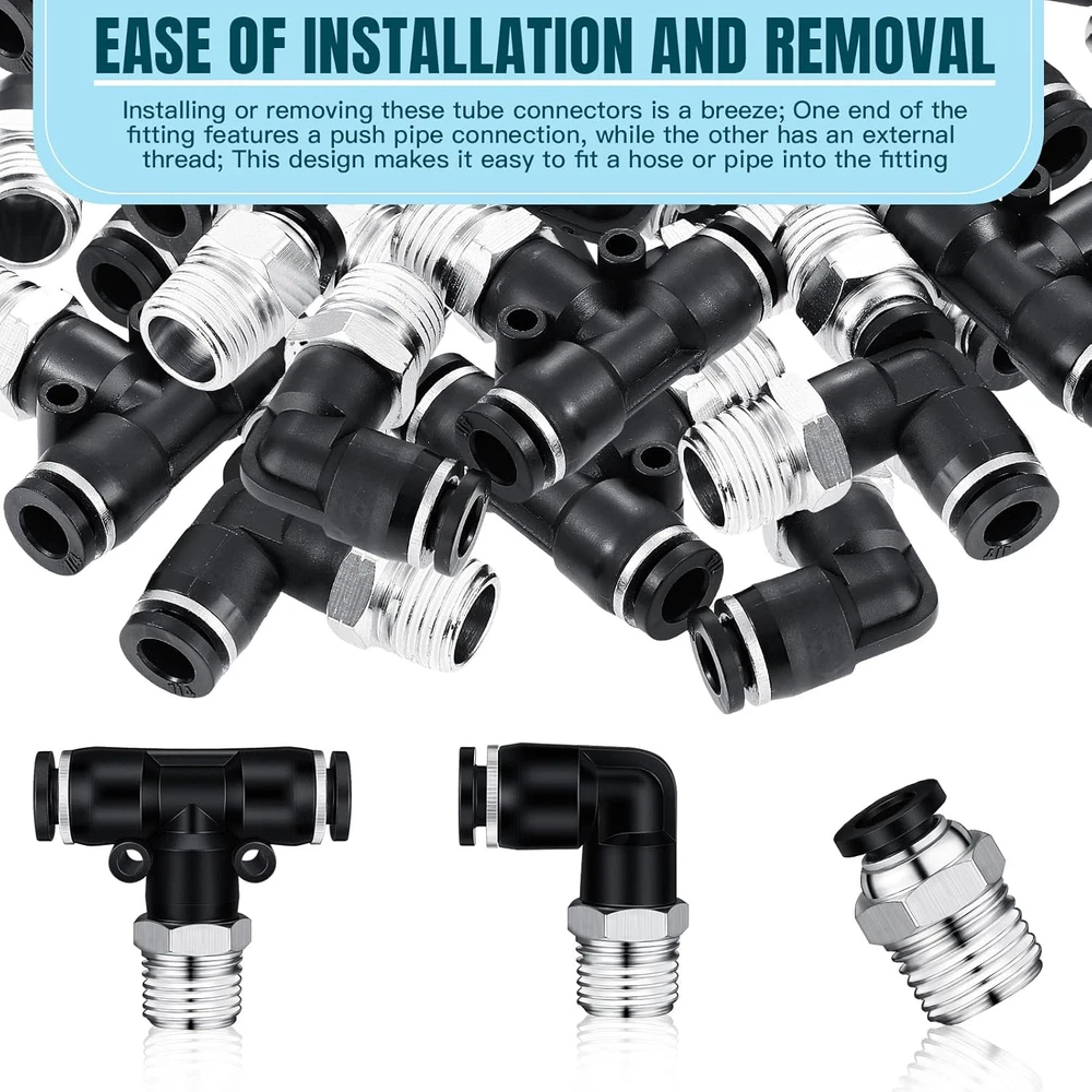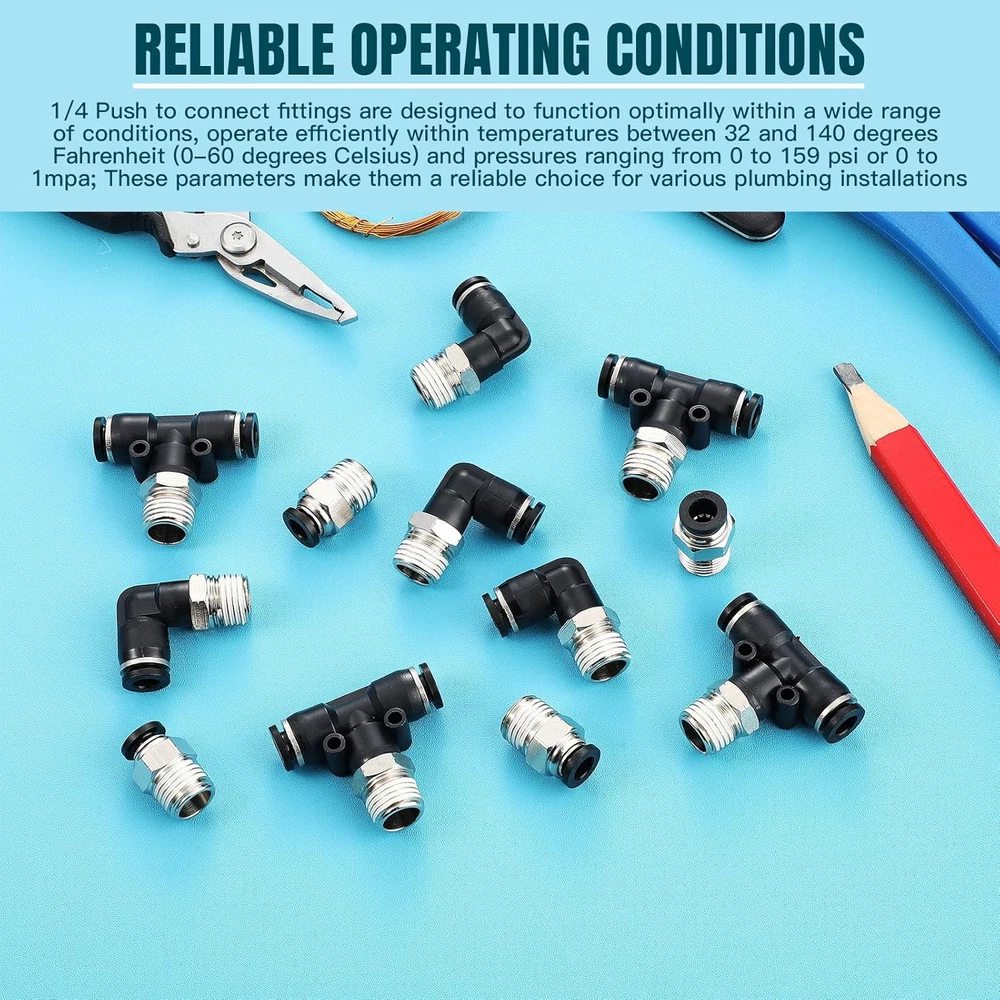 Store New Arrivals Add to Favorite View Feedback Contact 12 Pcs Push to Connect Fittings 1/4 Inch Tube OD X 1/4 NPT Air Line Pneumatic Description Item model number XIE-Yaocom-586 Part Number XIE-Yaocom-586 Batteries Required? No Size 1/4 NPT Item Package Quantity 12 Color Silver Brand Yaocom Material Plastic Country of Origin China Connector Type Elbow Item Weight 0.18 Kilograms Thread Type NPT Number of Pieces 12 Exterior Finish Copper Package Dimensions 4.65 x 3.39 x 0.67 inches Thread Size 0.25 inch Manufacturer Yaocom Comprehensive Package: every package of push to connect tube fittings comes with 12 pieces, divided across 3 different styles, direct push style, elbow push style, and three-way push type, each with 4 pieces; This variety allows you to choose suitable fitting for your pneumatic pipe installation needs Firm Material: pneumatic fittings are made of plastic and copper; This combination of materials ensures these fittings are not only firm and secure but also resistant to wear, pressure, and corrosion; Despite their solid construction, they remain lightweight making them easy to work with in various installations Ease of Installation and Removal: installing or removing these tube connectors is a breeze; One end of the fitting features a push pipe connection, while the other has an external thread; This design makes it easy to fit a hose or pipe into the fitting Multiple Application: whether intended for pipe, air or vacuum systems, push to connect fittings are suitable for various pipe applications; Their quality build and easy installation make them a suitable choice for both professional and DIY pipe installation projects Reliable Operating Conditions: 1/4 push to connect fittings are designed to function optimally within a wide range of conditions, operate efficiently within temperatures between 32 and 140 degrees Fahrenheit (0-60 degrees Celsius) and pressures ranging from 0 to 159 psi or 0 to 1mpa; These parameters make them a reliable choice for various plumbing installations Features: Size for versatile use: With a size of 1/4 Inch OD x 1/4 NPT, tube fittings make an ideal choice for varied pipe installations. They fit into different pipe sizes, contributing to their wide range of applications, making them quite versatile. Stylish aesthetic: Air hose fitting comes in a stylish combination of silver and black, making them a visually appealing choice for your plumbing systems. Although they serve a functional role, their finish ensures they contribute positively to the appearance of your plumbing installation. Specifications: Material: plastic, copper Color: silver, black Size: 1/4 Inch OD x 1/4 NPT Package includes: 12 x Push to connect tube fittings Notes: Manual measurement, please allow slight errors on size. The color may exist a slight difference due to different screen displays. Small items may include, please keep them away from little children. ABOUT US We offer the best prices around on high quality products. Our E-store includes media such as books, movies, music and games while offering electronics, toys, sporting apparel, clothing, tools, general home, garden items and more. SHIPPING We are always working hard to ensure your package arrives as soon as possible. Please understand that some factors like weather, high postal traffic, and the performance of shipping companies are outside of our control. We offer free shipping to the lower 48 states and ship within 2 business days of payment, usually sooner. We do not accept P.O. Boxes. Please provide a physical address. RETURNS We offer a 30-Day Return Policy on items which you are not completely satisfied with. You have the option for a full-refund or an exchange of the item. No returns are available on items shipped outside of the USA. PAYMENT We accept PayPal. CONTACT US This page content is yet to come Please ad us to your favorite seller and visit again later Thank You CUSTOMER SATISFACTION We try our very best to make sure every customer is completely satisfied. If there's a problem, message us! We're happy to help.
