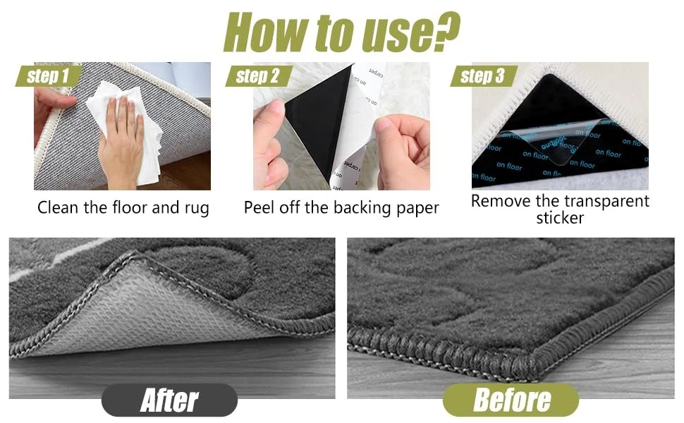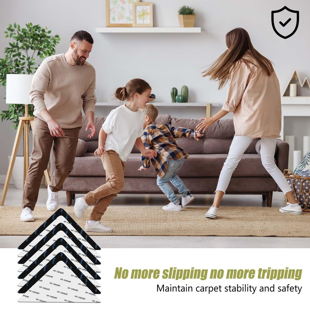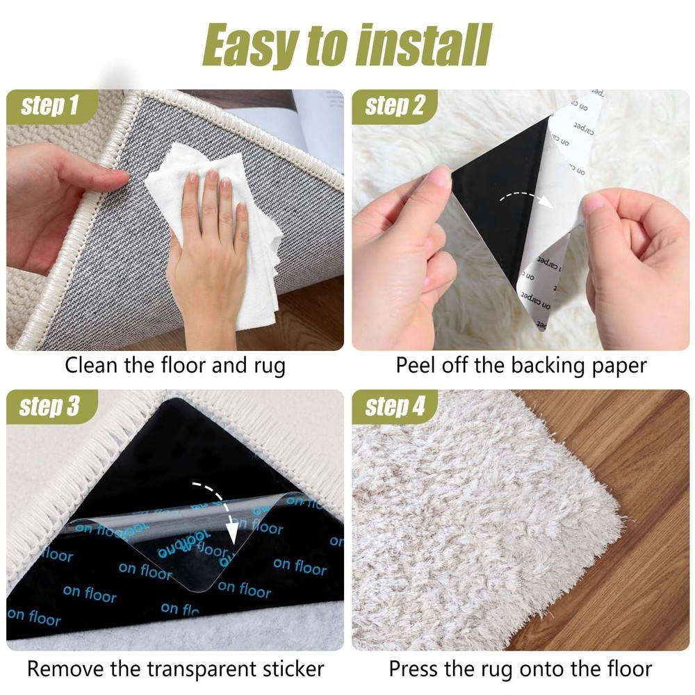 12 Pcs Rug Tape, Non Slip Carpet Tape for Hardwood Floors, 12, Black Description Features: Ultra-Thin with Instant & Strong Grip : Measuring only 0.04-inch thick, these rug stickers feature industrial-grade adhesive and an advantaged triangle design that maximizes contact surface. They secure rugs instantly on hardwood, tile, marble, and concrete floors, preventing curling corners and keeping rugs steady—ideal for homes with pets/children or busy offices. 12 Reusable Sheets in Perfect Size : The 12-pack includes 5.72”x4.13” sheets, which can be cut freely or used full-size. Suitable for large area rugs, entryway mats, and delicate carpets, offering flexibility for various rug types and sizes. Zero Residue & Floor Protection : Made with hypoallergenic PU adhesive, these grippers remove cleanly without leaving scratches, sticky marks, or damage. Safe for vintage floors, epoxy coatings, and polished surfaces, ensuring your floors stay pristine. Washable, Eco-Friendly & Usage Notes : Rinse with water, air dry, and reuse over 100 cycles, saving costs vs. disposable tapes (use rubbing alcohol for better adhesion restoration). Works on hardwood, tile, concrete, and marble, but avoid jute/rubber-backed rugs, low-pile carpets, fluff-backed rugs, or rugs over carpet. Product Details: Handling We will ship all orders within 3 business day of payment. Delivery We Do Not Ship Outside of the Continental US. Return Policy All items qualify for returns within 30 days of receipt. Buyer is responsible for return shipping on any item that is not damaged. Feedback We take our reputation seriously, we buy and sell online, so we understand the value of trust. If you are unsatisfied with your order, please contact us and we will work with you to resolve it to your satisfaction.