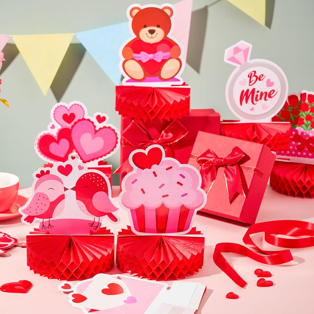 Store New Arrivals Add to Favorite View Feedback Contact Fast deliveries to the customer's home Quality customer service John Make the customers happy! 12 Pcs Valentine'S Day Honeycomb Centerpieces, Table Decorations with Red Pink Heart Bear , Centerpieces Decor for Kids Birthday Valentine'S Day Party Supplies Description ADORABLE VALENTINE DECOR: Crafted with love and care, these centerpieces feature 12 charming designs, adding a touch of whimsy and warmth to your party setting. PREMIUM PAPER MATERIAL: Made from high-quality paper, our centerpieces are durable, lightweight, —ensuring a perfect blend of style and sustainability. KID-FRIENDLY PARTY SUPPLIES: Thoughtfully designed for kids, these centerpieces captivate young hearts, making them an ideal addition to your Valentine's Day celebration. EASY SETUP AND STORAGE: Effortlessly unfold and set up these honeycomb centerpieces, creating an instant festive vibe. Plus, they're compact for easy storage until the next celebration. VERSATILE PARTY DECORATION: Beyond Valentine's Day, reuse or repurpose these versatile centerpieces for birthdays, baby showers, and other joyful occasions. Product description Manufacturer Minimum Age (MONTHS) 36.00 Item dimensions L x W x H 9.45 x 8.26 x 1.18 inches Unit Count 12.0 Count Color Red Product Dimensions 9.45 x 8.26 x 1.18 inches Material Paper Global Trade Identification Number 00840332622095 Item Weight 8.1 ounces Theme Love Manufacturer recommended age 3 years and up Age Range (Description) Kid Manufacturer Maximum Age 1188.0 Occasion Valentine's day Manufacturer US CORP ABOUT US We offer the best prices around on high quality products. Our E-store includes media such as books, movies, music and games while offering electronics, toys, sporting apparel, clothing, tools, general home, garden items and more. SHIPPING We are always working hard to ensure your package arrives as soon as possible. Please understand that some factors like weather, high postal traffic, and the performance of shipping companies are outside of our control. We offer free shipping to the lower 48 states and ship within 2 business days of payment, usually sooner. We do not accept P.O. Boxes. Please provide a physical address. For shipping outside of the continental USA, we only use eBay's Global Shipping Program. The item is shipped to KY and then sent to the rest of the world. International customers are responsible for all duties and taxes. Continue to 'check out' to calculate costs for shipping the item to your country. Messages regarding eBay's Global Shipping Program MUST be directed at eBay EXCLUSIVELY. RETURNS We offer a 30-Day Return Policy on items in which you are not completely satisfied with. You have the option of a full-refund or an exchange of the item. No returns are available on items shipped outside of the USA PAYMENT We accept PayPal. CONTACT US This page content is yet to come Please ad us to your favorite seller and visit again later Thank You CUSTOMER SATISFACTION We try our very best to make sure every customer is completely satisfied. If there's a problem, message us! We're happy to help. WE ACCEPT