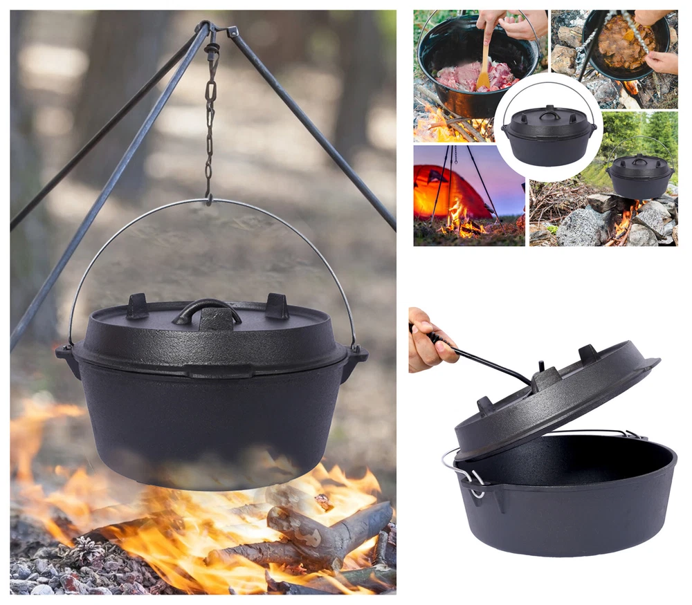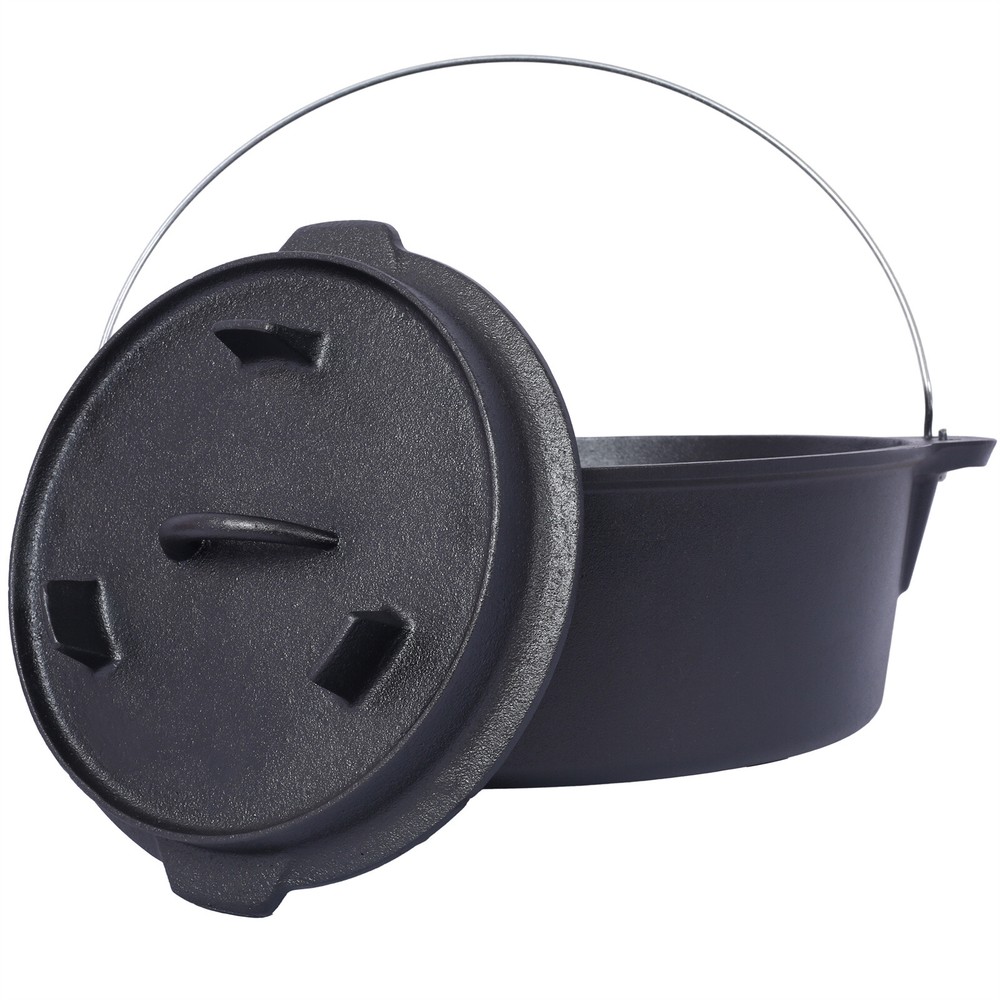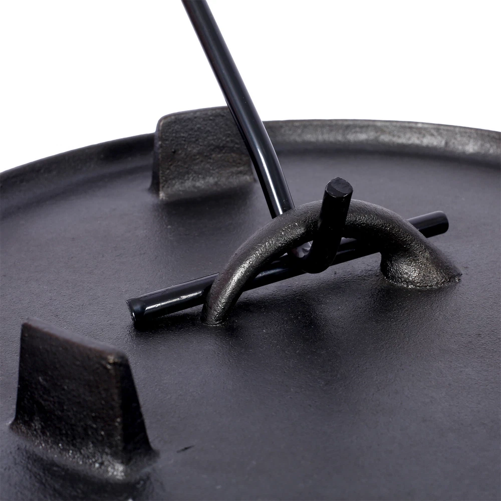 Crafted to endure the harshest of outdoor conditions, this is a camping essential. Whether you're simmering a hearty stew over an open campfire, baking a delicious cobbler in hot coals, or slow-cooking a savory meal during your wilderness escapades, this Dutch oven's excellent heat retention and even distribution ensure culinary success every time. It's the ultimate companion for creating unforgettable camping feasts. Features: Crafted to endure the harshest of outdoor conditions, this is a camping essential. Whether you're simmering a hearty stew over an open campfire, baking a delicious cobbler in hot coals, or slow-cooking a savory meal during your wilderness escapades, this Dutch oven's excellent heat retention and even distribution ensure culinary success every time. It's the ultimate companion for creating unforgettable camping feasts. The Dutch oven's ingeniously designed lid is a true marvel of functionality. Fitted with sturdy legs, it seamlessly transforms into a skillet or griddle, unlocking a whole new realm of culinary possibilities during your camping trips. Whether you're craving crispy bacon for breakfast, searing succulent steaks for dinner, or flipping fluffy pancakes under the open sky, this dual - purpose lid has you covered. Designed with convenience at its core, this cast iron Dutch oven features a robust built-in carrying handle, enabling you to effortlessly tote it from your vehicle to the campsite. Moreover, the oven can be securely suspended from a tripod stand on level surfaces, providing you with unparalleled flexibility in your cooking setup. With its seamless combination of portability and adaptability, this Dutch oven is the ultimate companion for any outdoor cooking enthusiast. Your well-being and convenience are our top priorities. That's why we include a specialized dutch oven lid lifter, engineered to ensure a secure and hassle - free experience when handling hot lids. This essential accessory minimizes the risk of burns and accidental spills, allowing you to confidently maneuver the lid while cooking. It's a thoughtful addition that enhances your outdoor cooking adventure, giving you peace of mind with every use. Product Dimensions Assembled Length (in.): 15.30 Assembled Width (in.): 17.00 Assembled Height (in.): 7.80 Product Weight (lbs.): 30.20 Package Size Length (in.): 16.50 Width (in.): 16.30 Height (in.): 8.70 Weight (lbs.): 32.20