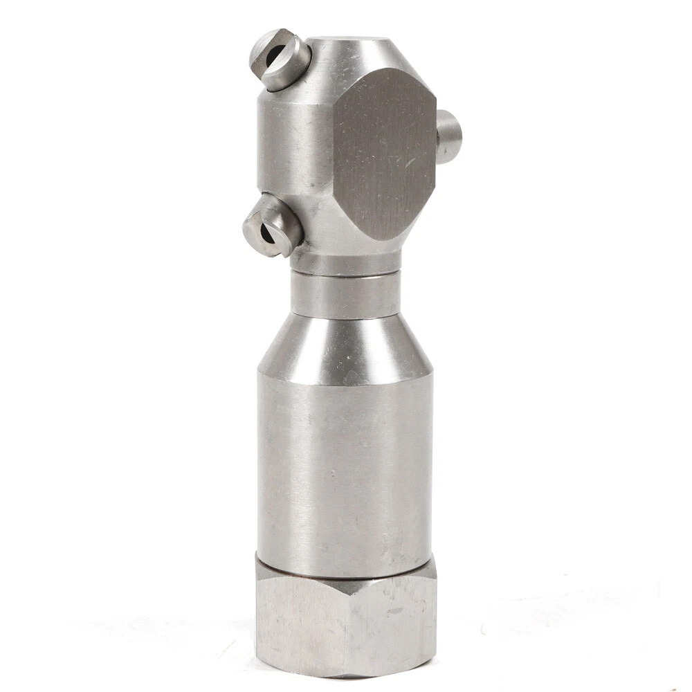 1/2" Rotating Jetter Head Rotary Nozzle Pressure Washer Hose Cleaner Drain Sewer Description 18250 continuous rotary cleaning nozzle is driven by the reaction force of liquid to rotate without external motor or gear.Three powerful fan-shaped nozzles are installed on the rotary nozzle driven by the flushing fluid flow. These nozzles are precisely positioned so that all internal surfaces are completely within the scope of the cleaning track, effectively cleaning the internal surface of the small tank or barrel. Specification: Material:stainless steel 304 Colour: si l ver Size:35*125mm Type:1/2 internal thread Application fields: container / pipeline cleaning, pure water / steel bucket cleaning, food processing tank cleaning, pharmaceutical processing tank cleaning. Features: 1.High impact cleaning of portable containers and buckets with a diameter of 8 feet (2.4 meters) 2. The cleaning solution can pass through once or contain small particles. 3. When there is no need to control the nozzle, the liquid pressure should be less than 5 bar 4. High temperature resistance and the maximum temperature is 177 ℃. Package Included: 1x Washing Nozzle Note: -The washer can be installed in vertical or horizontal position. -Please allow 1-3MM differs due to manual measurement. -Due to the different display and different light, the picture may not reflect the actual color of the item. Thanks for your understanding. Any problem, please contact the seller!!! Payment Delivery details Terms of sales About us Contact us Payment We accept ebay payment 。 Fees such as import duties, taxes are not included in the item price or shipping costs. These charges are the buyer's responsibility. Delivery details Shipping: 2-9 working days to: USA Terms of sales We maintain high standards of excellence and strive for hundred percent customer satisfaction. Feedback is very important to us. We hope that you contact us immediately before you give neutral or negative feedback, so that we can address your concerns. It is impossible to address issues if we do not know about them! About us Your satis faction is our ultimate goal. We work hard to earn your trust and future business. Our certified technicians have tested each item before shipping. The unit comes with 1 year limited warranty on all manufacturing defects. a) If you receive a defective item, you may return it or ask for a discount. Please contact us within 14 days after you receive the package. b) What you returned must be intact and in its original packaging as re? u. Customer is responsible for shipping costs of the returned item. c) We will cover the cost of shipping back t with the shipping rate indicated in the registration page. We will send you a new unit or refund the full payment you paid. Thank you. Contact us Business Hour Business Hour: Monday To Friday: 8:30 AM to 5:00 PM (Beijing China time) Due to time zones, our reply to your questions may not be immediately. But within above working time, we will reply your email within 24 hours. If it's non-workdays, please kindly be patient and wait till Monday. Please contact us with ebay message. Please feel free to contact us if you have any questions. Monday To Friday: 8:30 AM to 5:00 PM (Beijing China time) Due to time zones, our reply to your questions may not be immediately. But within above working time, we will reply your email within 24 hours. If it's non-workdays, please kindly be patient and wait till Monday. Please contact us with ebay message. Please feel free to contact us if you have any questions.