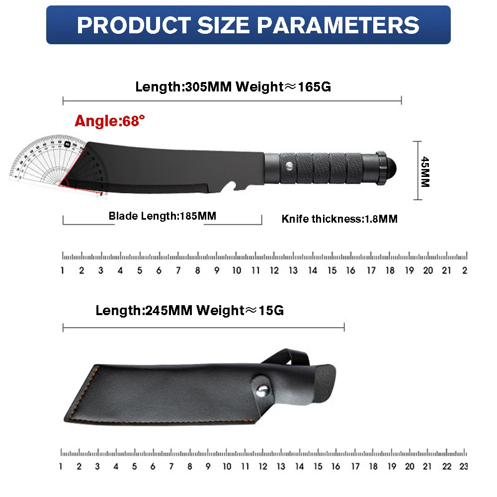 Length: 30.5cm (12.0 inches) Weight: 165g (5.82 oz) Blade Length: 18.5cm (7.28 inches) Blade Thickness: 1.8mm (0.07 inches) Blade Material: 4Cr13MoV Stainless Steel Handle Material: ABS DURABLE: Blade Is Made Of Reliable 7Cr17Mov Black Oxide High Carbon Stainless Steel With A Black, Aluminum Handle DEPENDABLE: Quick And Easy Access With The Convenient Pocket Clip, Finger Flipper And Ambidextrous Thumb Knobs Making It Ideal For Everyday Carry SECURE: Have Confidence That The Blade Will Not Slip With The Security Of The Liner Lock BE PREPARED: Knife Features Jimping And Serrations