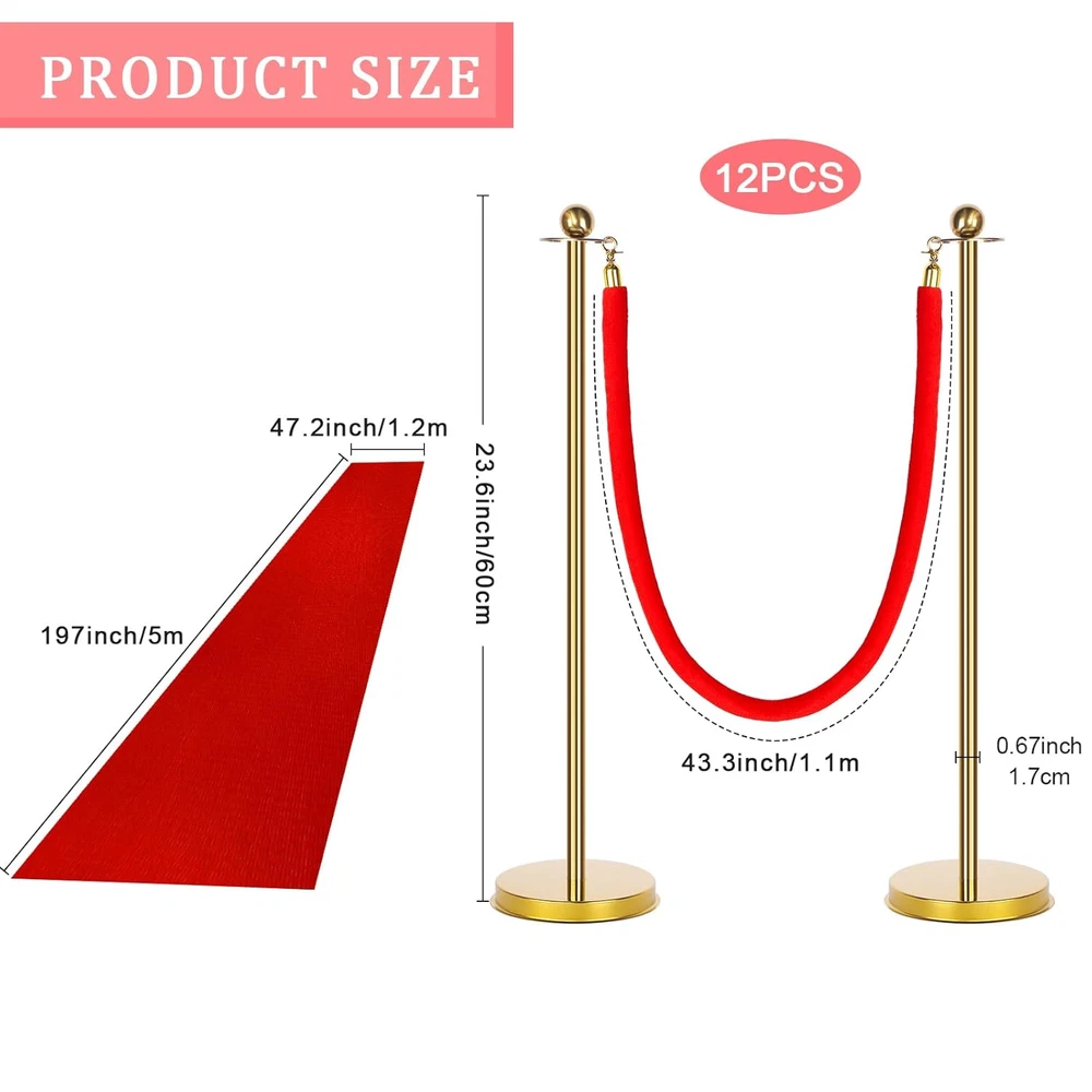 Store New Arrivals Add to Favorite View Feedback Contact 12 Set Red Carpet Party Decorations, 23.6 Inch Posts and Velvet Ropes with 3.95 X 16.5Ft Red Aisle Runway Rug for Kids Red Carpet Night Movie Night Party Christmas Wedding Decoration Description Item model number 1 Country of Origin China Package Dimensions 21.5 x 14.2 x 6.5 inches; 8.25 Pounds Value Pack Crowd Control Barrier: you will receive 12 pieces of red velvet ropes, 12 gold stanchions, 1 non woven red carpet runner, 12 gold plated bases, 120hangings, 12 stainless steel decorative hollow balls and fixing pieces; They are nice combinations for you to decorate different kinds of parties and meaningful occasions Product Size: the length of the velvet rope is about 43.3 inch and the diameter is about 0.79 inch, the height of the poles is about 23.6 inch, and the diameter is about 0.67 inch, the size of the velvet red carpet runner is about 47.2 x 196.85 inch, the length of the gold stanchion poles is long enough to cover a larger area and can meet your various needs Reliable Material: the gold crowd control stanchions are constructed with 201 stainless steel pillars and zinc alloy balls, which are anti corrosion and heat resistant; The red velvet ropes are made of thick facecloth material, which is not easy to break, and eye catching; And the red carpet runner is non woven, which is easy to clean and not easy to pilling 4 Way Connection and Easy Installation: 4 adapters at the top of each post for velvet ropes to connect to chrome plated zinc alloy lobster clasps for easy expansion in all four directions; In addition, hooks at each end of each rope allow you to attach the rope to the post easily and quickly Wide Range of Applications: our red carpet party decorations velvet ropes and posts are suitable for adorning a variety of party scenarios, such as red carpet parties, movie themed parties, Christmas parties, birthday parties, and holidays, adding a more lively atmosphere to you Product Description Stainless steel Thick cloth material Non-woven fabri ABOUT US We offer the best prices around on high quality products. Our E-store includes media such as books, movies, music and games while offering electronics, toys, sporting apparel, clothing, tools, general home, garden items and more. SHIPPING We are always working hard to ensure your package arrives as soon as possible. Please understand that some factors like weather, high postal traffic, and the performance of shipping companies are outside of our control. We offer free shipping to the lower 48 states and ship within 2 business days of payment, usually sooner. We do not accept P.O. Boxes. Please provide a physical address. For shipping outside of the continental USA, we only use eBay's Global Shipping Program.The item is shipped to KY and then sent to the rest of the world. International customers are responsible for all duties and taxes. Continue to check out in order to calculate costs for shipping the item to your country. Messages regarding eBay's Global Shipping Program MUST be directed at eBay EXCLUSIVELY. RETURNS We offer a 30-Day Return Policy on items which you are not completely satisfied with. You have the option for a full-refund or an exchange of the item. No returns are available on items shipped outside of the USA. PAYMENT We accept PayPal. CONTACT US This page content is yet to come Please ad us to your favorite seller and visit again later Thank You CUSTOMER SATISFACTION We try our very best to make sure every customer is completely satisfied. If there's a problem, message us! We're happy to help. WE ACCEPT Copyright © 2021 AutoDS. | All Rights Reserved