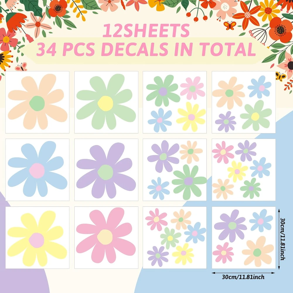 12 Sheets Daisy Wall Decals Flower Wall Stickers Large Daisy Wall Stickers Daisy