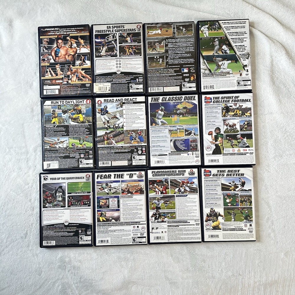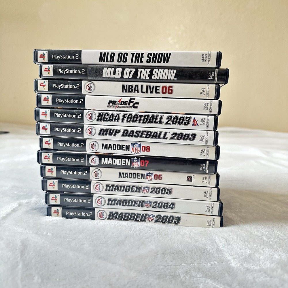 The product is a collection of 12 sports games for the Sony PlayStation 2, including Madden NFL, NCAA Football, and NBA Live. These games are published by 2K Games and fall under the genre of sports, specifically basketball. This lot offers a variety of sports gaming experiences for fans of basketball and American football, allowing players to immerse themselves in the worlds of collegiate and professional sports.
