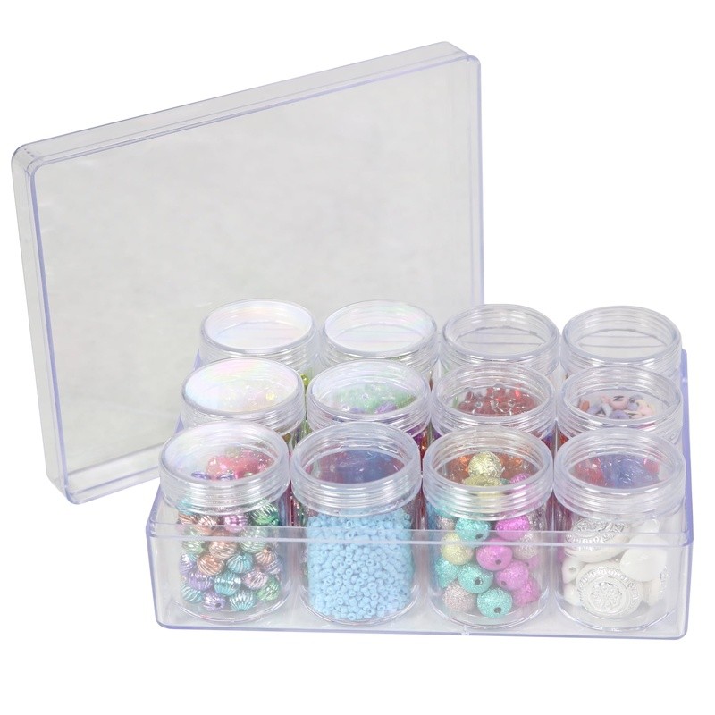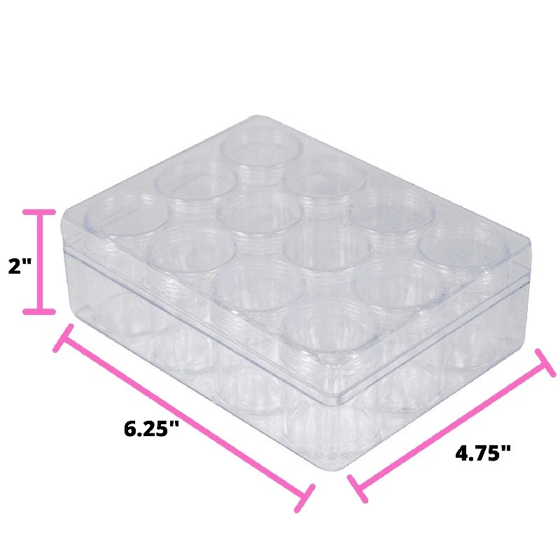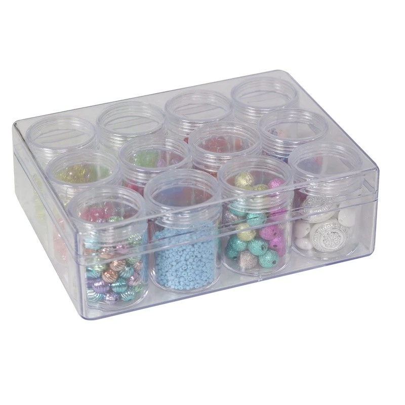 12 Unit Clear Plastic Bead Storage Box W/ Removable Jars Craft Organizing New