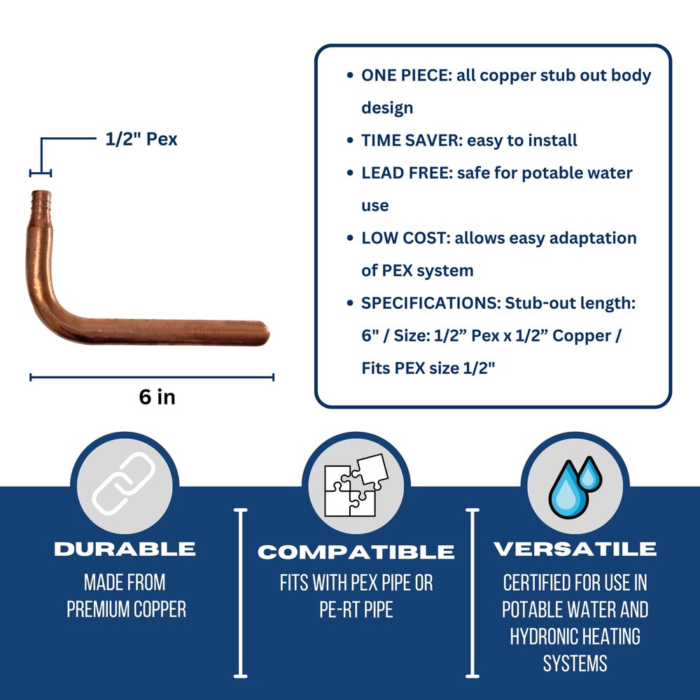 Introducing the 1/2" PEX Stub Out – your versatile solution for streamlined plumbing installations with precision and reliability. Crafted with excellence by , this stub out is engineered to meet the highest standards of durability and performance and comes in a variety of styles to suit your specific needs. Designed to accommodate 1/2" PEX tubing, this stub out offers versatility for various residential and commercial plumbing projects. Whether you're conducting repairs, renovations, or new installations, trust to deliver the precision and reliability you need for successful plumbing endeavors. Upgrade your plumbing system with confidence using the 1/2" PEX Stub Out – where quality meets innovation for lasting performance you can trust. Brand: Size: 1/2" Pex Compatibility: Designed for use with 1/2" PEX tubing Versatility: Suitable for residential and commercial plumbing projects