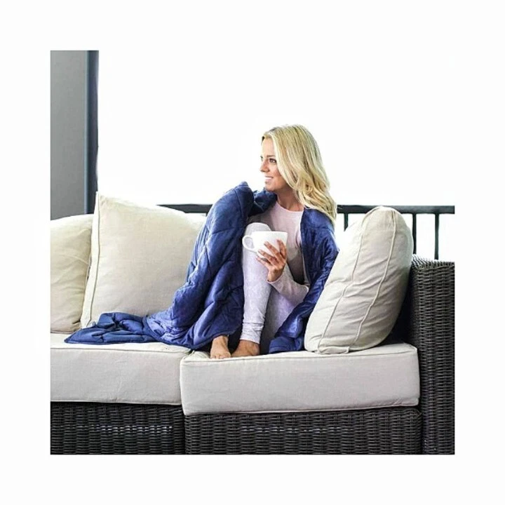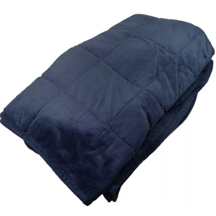 Morgan Home Fashions 12 Pound Weighted Blanket 48" x 68" Quilted Navy + Cover • Pre-Owned Excellent Condition (Used Once) • Original Retail: $80 & $50 • Weight: 12lb (Approx. 14- 15lbs . w/ Cover) Approximate Measurements: 48" x 68" Occasion: Everyday Includes: • Quilted Microfiber Weighted Blanket (Navy) • Tranquility Washable Zip Cover (Silver Geometric Diamond Design) Benefits: • Hypoallergenic Microfiber Shell w/ Glass Beads • Calms & Relaxes like a Soothing Embrace • Helps Ensure a Better Nights Sleep • Ultra Soft & Cozy Fluffy Lining for Added Comfort • Quilted Double Stitching for Even Weight Distribution & Durability • Easy to Clean Washable Cover • Protects Weighted Blanket Snuggle up in style & comfort with this Morgan Home Fashions Weighted Blanket & Tranquility Zip Cover. The Quilted design adds an elegant touch to any room, while the 12 pound weight provides a cozy & calming sensation. Measuring 48" x 68", this body-sized blanket is perfect for chilly nights & decor.