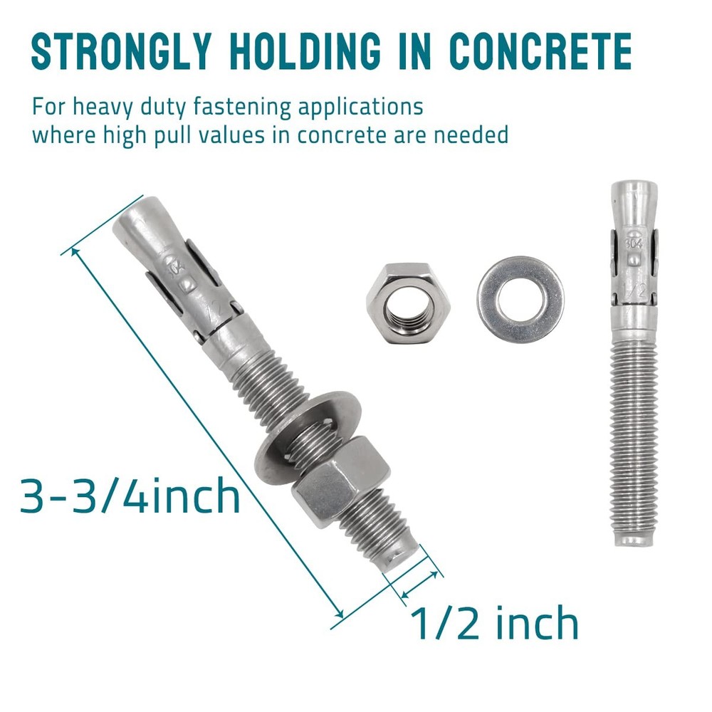 1/2" x 3-3/4 inch Strong Wedge Anchor, Stainless Steel Screws and Anchor Bolt...