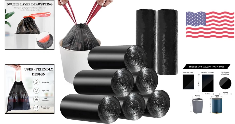 120 Count 8 Gallon Trash Bags - Thick Garbage Bags for Office Kitchen Home ‹ › ‹ › ‹ › ‹ › ‹ › ‹ › ‹ › ‹ › ‹ › 120 Count 8 Gallon Trash Bags -Thick Garbage Bags for Office Kitchen Home Features: Made of high-quality new PE material with a thickness of 0.8 mil. Integrated and seamless bottom design prevents leaks, even with liquids. Tested to bear a maximum of 40 lb. Size: 22.06''W x 25.61''H, suitable for square or circular trash cans. Double layer drawstring for easy tightening and carrying. Environmentally unscented, no odor or harm to people. Wide application for kitchen, office, bedroom, living room, bathroom, car, and more. Benefits: High-quality and durable No leaks, even with liquids Convenient size and quantity Easy to tighten and carry Environmentally friendly Wide range of applications Why choose our 120 Count 8 Gallon Trash Bags? Tired of flimsy, leaky trash bags that can't handle your daily waste? Our 120 Count 8 Gallon Trash Bags are made of high-quality PE material with a seamless bottom design, ensuring no leaks even with liquids. With a maximum weight capacity of 40 lb, these bags are perfect for your office, kitchen, or home. The double layer drawstring makes it easy to tighten and carry without staining your hands. Plus, they are environmentally unscented, so you don't have to worry about any unpleasant odors. Don't settle for inferior trash bags - choose our 120 Count 8 Gallon Trash Bags for all your waste disposal needs. Order now and experience the difference! Shipping Free & Fast Shipping - We offer free shipping to most of the USA with a normal delivery time of 3-7 days. However, due to the current situation, additional delivery time (up to 3 weeks) may be required for some items. Alternative Carriers - We may use alternative carriers (e.g. USPS, FedEx, UPS, etc.) to ensure your package arrives safely and on time. Due to the use of multiple carriers, we are unable to provide a tracking number automatically. Handling Time - Orders are processed and shipped within 1-2 business days of receiving cleared payment. Shipping Restrictions - Shipping to Alaska, Hawaii, Puerto Rico, Guam, and other US territories may incur shipping charges or delivery restrictions. Please contact us before ordering, or your order can be refunded/cancelled. State Restrictions - There may be restrictions based on your state of purchase. For example, certain items may not be shipped to California due to state regulations. Contact for Tracking Updates - If you require tracking updates or have any concerns about the delivery of your order, please feel free to contact us, and we will be happy to assist you. Return 30-Day Hassle-Free Returns - We want you to be completely satisfied with your purchase. If you are not, you can return the item within 30 days of receiving it for a full refund or exchange. Easy Return Process - To start a return, simply contact us and we will provide you with a prepaid return shipping label and detailed instructions. Restocking Fee - There are no restocking fees for returns. However, the buyer is responsible for return shipping costs if the return is not due to a seller's error. Refund Processing Time - Refunds will be processed within 5 business days of receiving the returned item in its original condition. Payment We accept all major credit cards, PayPal, and Apple Pay for your convenience. Your payment information is secure and encrypted to ensure a safe and seamless transaction. Please complete your payment within 3 days of purchase to avoid any delays in shipping. Feedback Your feedback is extremely important to us. We strive to provide the best products and customer service possible. If you are satisfied with your purchase, please take a moment to leave us a positive review. If you have any concerns or issues with your order, please contact us before leaving negative feedback. We are committed to resolving any problems and ensuring your satisfaction. Contact Us If you have any questions or concerns, please feel free to reach out to our customer support team. You can contact us through the eBay messaging system. We are available Monday to Friday, 9:00 am to 5:00 pm EST, and we will do our best to respond to your inquiry within 24 hours. Thank you for supporting our small family business!