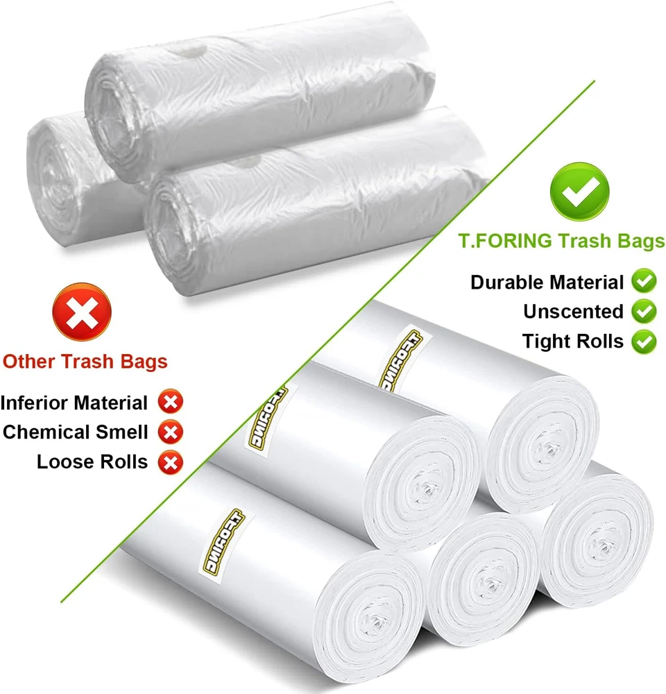Store New Arrivals Add to Favorite View Feedback Contact 120 Count 8 Gallon Trash Bags Unscented - Thick Clear Medium Garbage Bags, 30 Liter Strong Plastic Wastebasket Can Liners for Kitchen Home Bathroom Office Description Item model number Trash bags Unit Count 120.0 Count Item dimensions L x W x H 21.65 x 26.77 inches Capacity 30 Liters Number of Items 1 Part Number Trash bags Color Clear-8 Gal-120 Item Form Bag Material High Density Polyethylene Batteries Required? No Item Weight 1.46 pounds Batteries Included? No Material Feature Disposable, Scent Free, Fragrance Free Recommended Uses For Product Baby Waste, Toilet Waste, Yard Waste, Food Waste, Animal Waste Scent Unscented Size 120 Count (Pack of 1) 【STRONG & ODORLESS】T.FORING clear trash bags are sturdy and unscented, making them perfect for storing garments or similar items that won't be affected by odors from other trash can liners. 【 ODOR CONTROL 】T.FORING clear garbage bags use advanced tech with odor-neutralizing materials to absorb and neutralize unpleasant smells. Confidently tie up your trash without worrying about lingering odors. 【 PERFECT FIT 】 The 8 gallon trash bags are 21.65" x 26.77" x 0.96 mil, perfect for 23 - 30 liter trash bins, including round and rectangular cans. 【VERSATILE USES】 These medium trash bags work well for everyday use in the kitchen, office, car and outdoor. The trash can liners are tear-resistant and won't fall apart. 【CUSTOMER FIRST】 We're here for you. If you have any concerns, our online support team will do whatever it takes to help. Product Description FEATURE Size: 1FT 10IN x 2FT 3IN (55CM x 68CM) Correct Fit: 30 liter trash bin Scent: Unscented Color: Transparent Package: 120 counts in 4 rolls; 30pcs per roll T.FORING CLEAR TRASH BAGS Aim For Better in Quality Looking for a clear plastic trash bag to hold your office waste? Look no further than these strong and odorless garbage can liners. These 8 gallon trash bags have excellent quality, strength, and durability, and look great with various colors of trash cans. These medium trash bags 8 gallon are ideal for lightweight waste, such as kitchen, bathrooms, bedrooms, offices, etc. Keep a roll in your car for convenient use anytime. Sturdy & durable Unscented Odor control Leak-proof Easy to use Odor Control Our unscented trash bags are made of high-density polyethylene (HDPE) material, which provides exceptional strength and durability. The material also has excellent odor control properties, ensuring that unpleasant smells are contained within the bag and not released into your home. Easy to Separate Each clear trash bag is designed with perforations that make it easy to separate and tear off from the roll. This feature allows for quick and hassle-free dispensing, so you can spend less time fumbling with the roll and more time taking out the trash. Hold up Well The star bottom design of our waste basket trash bags helps to distribute weight evenly, ensuring that they can hold up well. The design also helps to prevent leaks and spills, so you can rest assured that your trash will stay contained within the bag. Tear Resistance Our medium size trash bags are constructed with high-quality materials that provide exceptional strength and tear resistance. You can use it to dispose of a variety of household waste, without worrying about it breaking and making a mess. HDPE MATERIAL PERFORATION STAR BOTTOM GOOD TOUGHNESS VERSATILE USE MEDIUM KITCHEN TRASH BAGS Easily dispose of food waste and other kitchen debris with these great quality kitchen trash bags 8 gallon. Strong tear resistance and odor control ensure confidence in cleaning up messes. BATHROOM GARBAGE BAGS Perfect for wet or damp waste, these durable trash can bags won't tear or leak. With a convenient roll design, disposing of hygiene products, tissues, and other bathroom waste is easy. OFFICE TRASH CAN BAGS Keep your workspace clean and tidy with these must-have office garbage bags. Their strong construction can hold up to paper waste, coffee cups, and other office debris. BEDROOM TRASH BAGS Dispose of tissues, packaging and other lightweight waste easily with these strong and durable garbage can liners. The tear-resistant material ensures no breaking or spilling while carrying it out, keeping your bedroom clean and organized. ABOUT US We offer the best prices around on high quality products. Our E-store includes media such as books, movies, music and games while offering electronics, toys, sporting apparel, clothing, tools, general home, garden items and more. SHIPPING We are always working hard to ensure your package arrives as soon as possible. Please understand that some factors like weather, high postal traffic, and the performance of shipping companies are outside of our control. We offer free shipping to the lower 48 states and ship within 2 business days of payment, usually sooner. We do not accept P.O. Boxes. Please provide a physical address. For shipping outside of the continental USA, we only use eBay's Global Shipping Program.The item is shipped to KY and then sent to the rest of the world. International customers are responsible for all duties and taxes. Continue to check out in order to calculate costs for shipping the item to your country. Messages regarding eBay's Global Shipping Program MUST be directed at eBay EXCLUSIVELY. RETURNS We offer a 30-Day Return Policy on items which you are not completely satisfied with. You have the option for a full-refund or an exchange of the item. No returns are available on items shipped outside of the USA. PAYMENT We accept PayPal. CONTACT US This page content is yet to come Please ad us to your favorite seller and visit again later Thank You CUSTOMER SATISFACTION We try our very best to make sure every customer is completely satisfied. If there's a problem, message us! We're happy to help. WE ACCEPT Copyright © 2021 AutoDS. | All Rights Reserved
