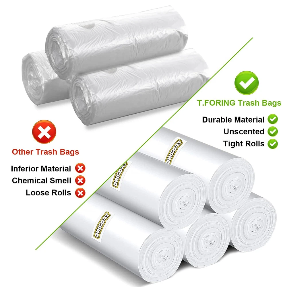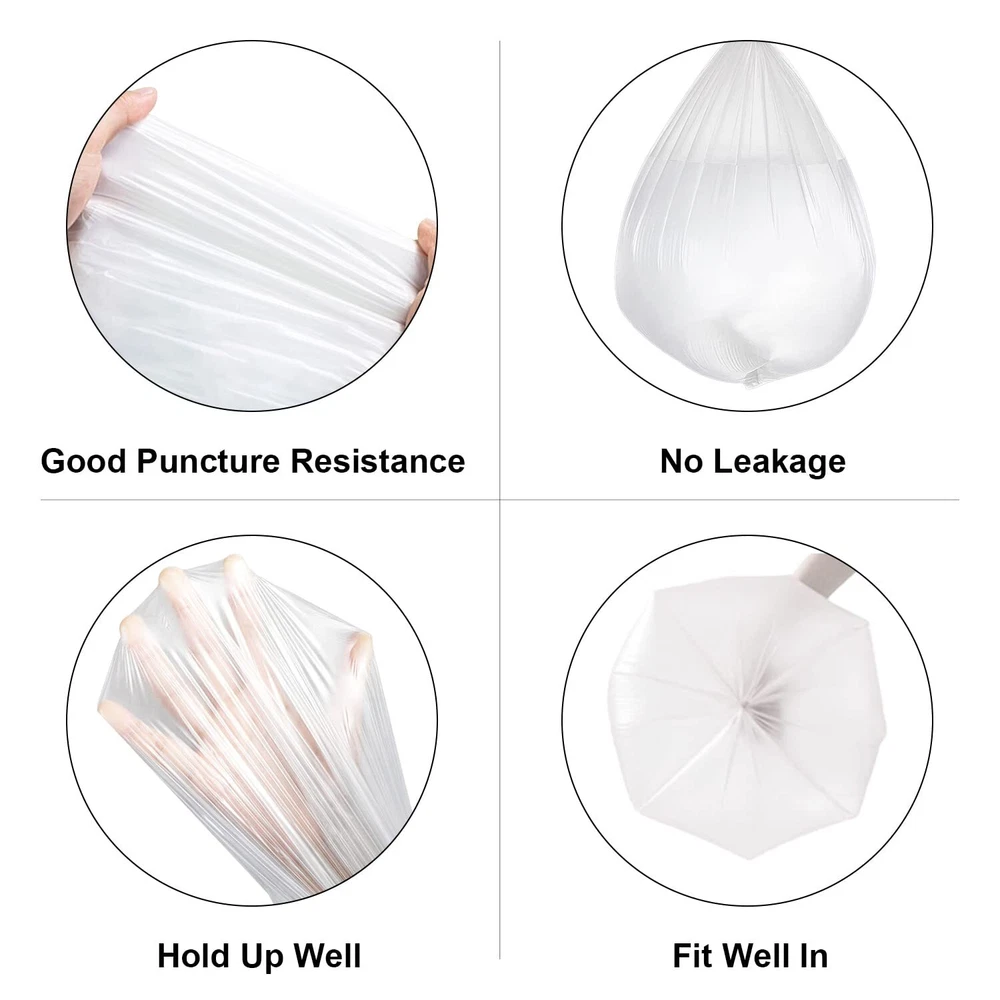 【STRONG & ODORLESS】clear trash bags are sturdy and unscented, making them perfect for storing garments or similar items that won't be affected by odors from other trash can liners. 【 ODOR CONTROL 】clear garbage bags use advanced tech with odor-neutralizing materials to absorb and neutralize unpleasant smells. Confidently tie up your trash without worrying about lingering odors. 【 PERFECT FIT 】 The 8 gallon trash bags are 21.65" x 26.77" x 0.96 mil, perfect for 23 - 30 liter trash bins, including round and rectangular cans. 【VERSATILE USES】 These medium trash bags work well for everyday use in the kitchen, office, car and outdoor. The trash can liners are tear-resistant and won't fall apart. 【CUSTOMER FIRST】 We're here for you. If you have any concerns, our online support team will do whatever it takes to help.