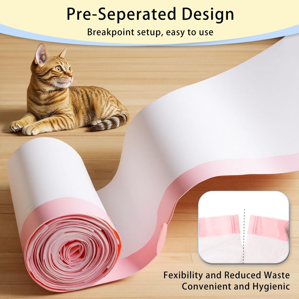 120 Count Heavy Duty Litter Box Liners Compatible with PetCove & Ducksky Automatic Litter Box Bags - Extra Large Self-Cleaning Cat Litter Box Liners, Leak-proof & Drawstring Design Waste Bags Custom Fit: These automatic litter box bags are custom-designed for PetCove and Ducksky self-cleaning litter boxes, ensuring a snug fit that prevents shifting or leaks. The drawstring litter box liners create a secure seal to contain odors Tough Material: Made with thicker HDPE material, these cat litter bags for automatic litter box resist claws and clumps. The tear-resistant automatic cat litter box self cleaning bags prevent messy accidents, even with heavy clay or crystal litter Easy Drawstring: The litter bags for automatic litter box feature quick-pull drawstrings that seal tightly in one motion. No more touching waste – just lift, tie, and toss for a zero-mess litter change Odor-Blocking Feature: Designed with odor control in mind, these automatic litter box bags are adept at securely trapping waste, thus effectively blocking unpleasant odors. Maintain a fresh and clean environment within your home, ensuring a pleasant living space Plenty of Bags: With up to 120 bags per pack, it provides an ample supply that can meet your needs for several months. Such a large quantity of bags significantly reduces the hassle of frequent replacements, offering unparalleled convenience in cat litter management