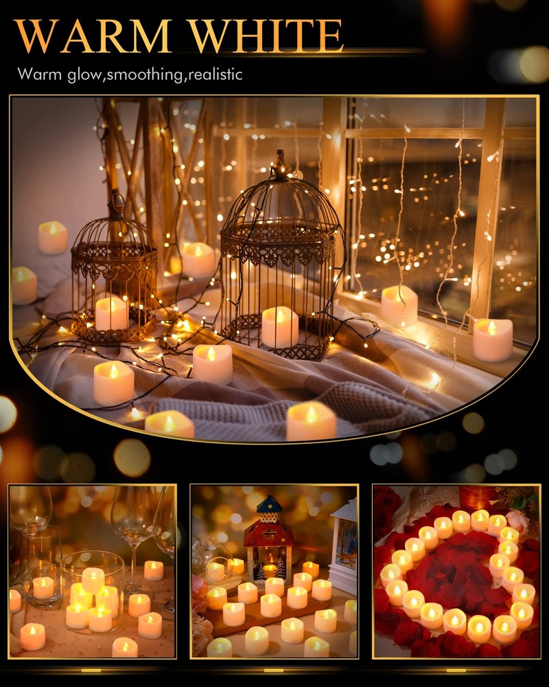 Hortsun 120 Pieces Flameless Tea Lights Candles Longer Battery Operated Votive Led Candles Flickering Romantic Tealights for Seasonal Festival Celebration Decor (Warm White) Package Includes: you will get 5 boxes of LED battery operated tealight candles of 24 each for a total of 120; To provide you with good workmanship of battery candles, the quantity is sufficient to meet your needs for various occasions Real Brightness: these flameless candles are made of quality materials, combined with realistic bright flickering flames, making them look more like real candles Candle Replacement: real candles don't stay bright for long; There are always safety concerns when left unattended; Also having to deal with a mess of melted wax after use; Use our flameless candles for the good solution to your troubles Easy to Use: our LED flameless votive tealight candles are pre installed with batteries to ensure they work right out of the box; Just toggle the on/ off button at the bottom to control it; The battery can be easily replaced via the bottom clip; There are enough quantities for your various activities, and the price is very favorable Warm and Romantic: flameless flickering LED tea lights create a warm, comfortable and calming atmosphere, which can be applied at home, bar, hotel, party, birthday, wedding, Christmas, Halloween or other occasions; It will definitely give you a wonderful use experience Shipping We offer FREE shipping on all orders! We ship within Three business days of payment, usually sooner. We use a selection of shipping services such as UPS, FedEx, USPS etc. We only ship to the lower 48 states, no APO/FPO addresses or PO Boxes allowed. Local pickups and combined shipping options are not provided at this time. International buyers – please note: Import duties, taxes, and charges aren't included in the item price or postage cost. These charges are the buyer's responsibility. Please check with your country's customs office to determine what these additional costs will be prior to bidding or buying. Order Cancellation Policy * Order Cancellation Policy ** You can return a product for up to 30 days from the date you purchased it. 1. The seller reserves the right to cancel the special case only due to eBay cancellation fee. 2. The decision of seller is the final. 3. The seller will respond to the cancellation request within 2 business days. Please wait for the result of cancellation. 4. In case the cancellation is not completed by some reasons, the buyer can follow the options below to get the refund. 4.1 The buyer can reject the item when it arrives. 4.2 The buyer can send the item back to the seller within 30 days If the buyer receives item (USA Shipment ONLY). The seller will provide the FREE return label to the buyer when the buyer opens " Return Item" case on eBay by using the reason as "Change my mind" ONLY. 5. When buyer has placed the order. The order will be processed and completed by automatic warehouse system within 5 minutes. In case that buyer sends the cancellation request after 5 minutes of placing the order, the request will be rejected. **Sending direct message to cancel the order is not allowed for every case.* Return Policy - If buyer would like to return the items for refund or replacement, please CONTACT SELLER to receive the free return label from seller. The refund or replacement will be processed with the tracking number of return label which is provided by seller only. The other ways of return which are not approved by seller will not be processed for the refund or replacement. Return You can return a product for up to 30 days from the date you purchased it. Any product you return must be in the same condition you received it and in the original packaging. Please keep the receipt. Payment We accept payment by any of the following methods: eBay Payments Please pay as soon as possible after winning an auction, as that will allow us to post your item to you sooner! Feedback Customer satisfaction is very important to us. If you have any problem with your order, please contact us and we will do our best to make you satisfied. Contact Us If you have any queries, please contact us via ebay. We usually respond within 24 hours on weekdays. Please visit our eBay store to check out other items for sale! Thank you for shopping at our store.