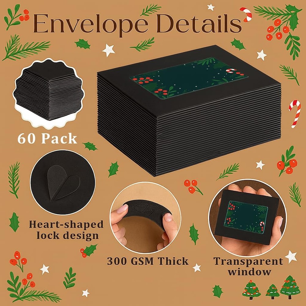 120 PCS Gift Card Holder,Gift Card Envelopes with Window,4 x 2.8 In Mini Envelopes,Kraft Paper Birthday Gifts Cards Holders with Heart Shaped Buckle for Halloween,Christmas,Thanksgiving,Business Party 【Premium 60-Count Gift Card Holders】 Each package includes 60 premium kraft paper gift card holders, perfectly sized for credit card or standard gift card envelopes. Designed for durability and versatility, these gift card sleeves are ideal for daily use, corporate gifting, or festive occasions. 【Clear Window Gift Card Envelopes】 Featuring a transparent window gift card display, these envelopes allow your cards or photos to be beautifully visible without removal. A window gift card holder adds an elegant touch to birthday, Christmas, or wedding gift presentations, combining style and practicality. 【Eco-Friendly Kraft Paper Material】 Made from thick, eco-friendly kraft paper, our gift card envelopes provide both durability and sophistication. The smooth surface is perfect for writing names or messages, while the classic brown tone suits holiday and business gift cards alike. 【Perfect for Every Occasion】 From birthday gift card holders to holiday envelopes for Halloween or Xmas cash gift cards, these versatile sleeves enhance every celebration. Ideal for business events, weddings, and thank-you gifts, they deliver both convenience and charm. 【Convenient & Secure Design】 The credit card–sized gift card envelopes are easy to carry, fold, and seal securely, keeping your cards safe during mailing or hand delivery. Perfect for individuals, small shops, and event planners looking for elegant kraft paper gift card sleeves.