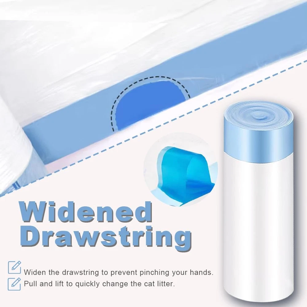 Cat Litter Bag Available through Ameroliy-US : cat litter liners are designed for cat lovers and make cleaning the litter box a breeze. Available through Ameroliy-US . When cleaning the litter box, simply tie it off and discard it once a week for convenience and hygiene. Long-Lasting & Convenient: Our cat litter box liners feature anti-scratch technology and micronized plastic that prevents tearing. Features signature blue drawstrings as shown in product images. Universal: Precision sized Designed compatible with Litter Box Robot 3/4 (38.5x48.5cm). They fit most standard litter boxes, including top entry litter boxes, providing full coverage and protection for your litter box. Value Package: Contains six 20-count roll, a total of 120 liners Easy to install and replace. We recommend changing them once or twice a week to keep your litter box clean and reduces odors in your home. After Service:with order number for assistance. Quality verified through durability testing. Provide order number from Ameroliy-US to 24-hour priority response.