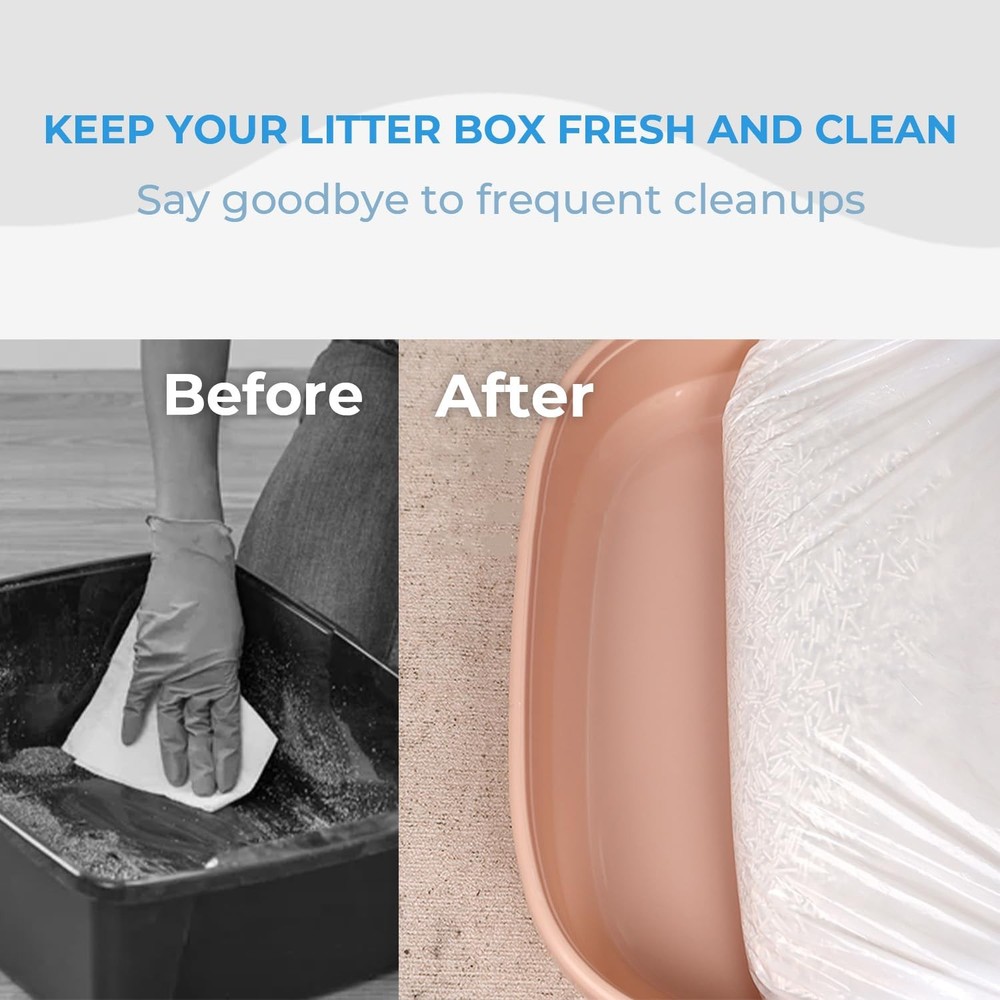 Cat Litter Bags 120 PACK Suitable for Automatic Litter Boxes: Our cat litter liners are compatible with Litter-Robot 3/4, ensuring effortless compatibility and effortless maintenance. Ensure litter box is under 24'’ total (length+width) for this liner. Drawstring Design: No more struggling with awkward ties or clips. Our cat litter box liners feature a convenient drawstring closure, allowing you to effortlessly seal and dispose of litter with a simple pull, making litter changes a breeze Engineered for Strength: our reinforced construction withstands your cat's digging and scratching. Say goodbye to flimsy bags and hello to peace of mind—Our reinforced construction ensures secure litter changes every time Easy to Separate: Our cat litter liners feature perforated tear lines that allow for effortless dispensing, ensure quick and smooth preparation for each cleanup Great Value: With dimensions measuring 25*16 inches and a generous capacity of 10-12 gallons, our cat box liners offer ample room for even the busiest litter boxes. Say goodbye to frequent bag changes and hello to convenience—our large-capacity bags ensure fewer interruptions and smoother cleanup sessions