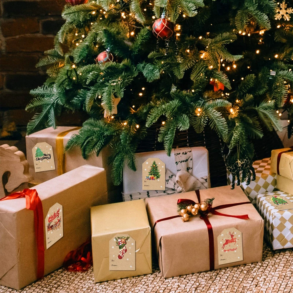 Package includes: Each sheet in this bundle of decorative holiday gift tag stickers Includes 10 sheets (10 sheets each of 12 themes) for a total of 120 sticker gift tags. Wide application: these Christmas labels contain various Christmas elements, such as snowflake, Santa, Christmas tree, Christmas stocking, blessing words and more; You can stick Christmas tags on gift boxes, gift bags, envelopes, snack bags and so on. Appropriate size: Each gift tag stickers measures 2" Wide x 3" Long, the sticker tag has plenty of room to write the names of the recipient and gift giver, putting a perfect final touch on each present this holiday season. Enliven Christmas atmosphere: Christmas is the time for family gatherings, merriment, gift exchanging and elaborate home decorations, and people will love these Christmas tags for gifts and it will be sure to create a warm and festive atmosphere around your house. Easy to use: Christmas gift self-adhesive labels with good quality printing, smooth to write and your writing is not easy to rub away. These removable adhesive tag leaves no trace, easy installation and remove without leaving residue, they will not affect your gift packaging while decorating your gift.