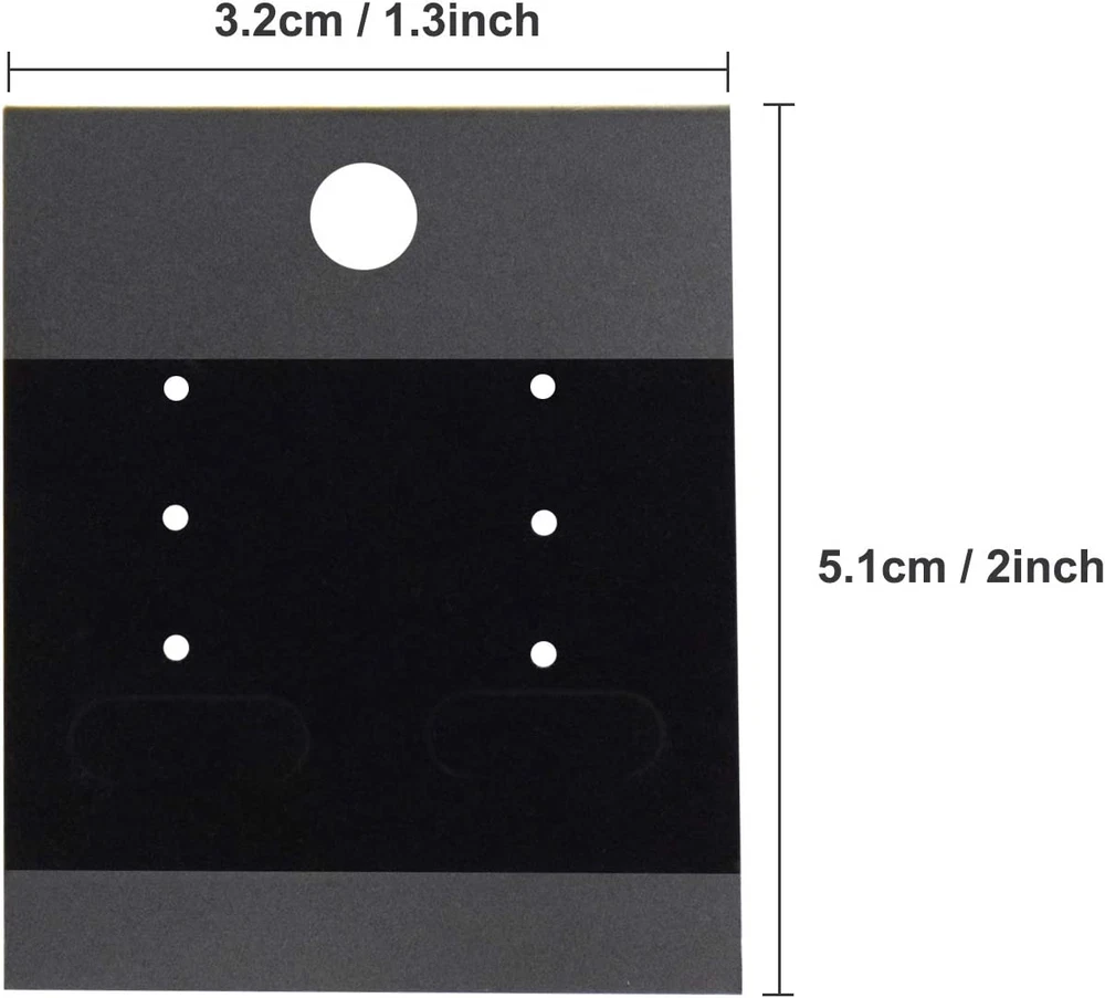 Velvet plastic earring display cards with 6 small holes for displaying earrings, ear studs; suitable for jewelry accessories displays, showcases and counter tops and other craft shows Size :1.65" Wide x 2" Length inches These hook top cards have holes for small post, hoop or dangle earrings its perfect to retail store and personal correction use Earring cards can be used as earring tags / jewelry display card / earring studs price tags / jewelry price tags Package comes with 120 pieces plastic earrings display card Product Description