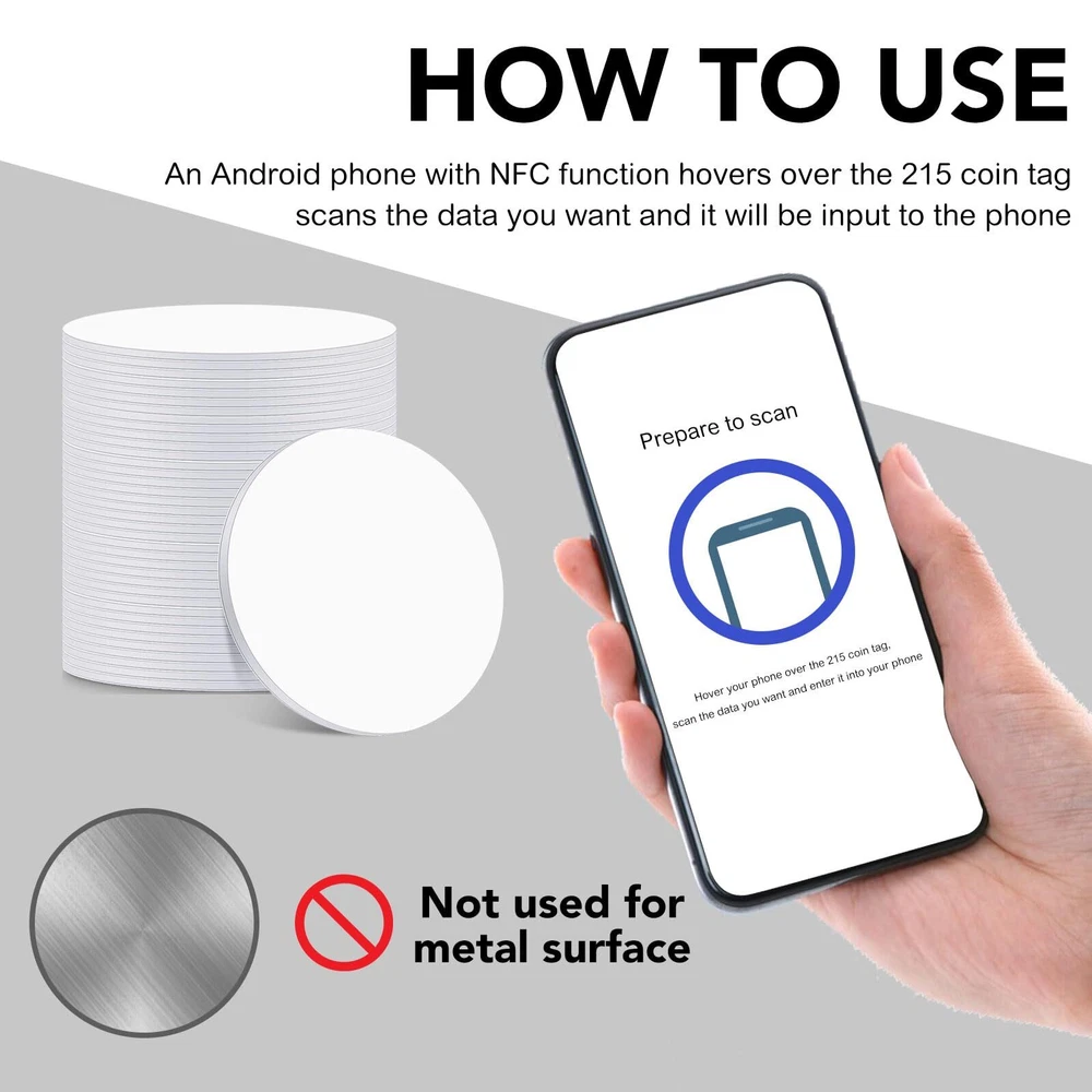 Specifications: Material:PVC Color:as shown in the pictures Size: NFC card is 25 mm Our Features: 1.The size of the round NFC card is 25 mm in diameter, small and light,easy to carry. 2 NFC chip has enough memory, including 504 bytes, to provide you with enough storage space, and has a read/write lock function. 3. 60Pcs Nfc tags with storage box can be given to colleagues, friends or family to experience intelligent life. Package includes: 120 Pcs NFC Tags 【New PVC Material】:The surface of the nfc tag is made of new PVC material, which has good stability. There is adhesive on the back, and the strength of the adhesive is convenient for fixing. The size of the NFC card is 25 mm in diameter, small and light, and it is stored in a storage box, which is convenient for you to carry and use. 【Easy to Operate】:You can hover your phone over the nfc tag for ease of use and the data will be automatically entered into your phone.Please note that it is not suitable for use in strong magnetic environments and metal surfaces, which will destroy its functions. Please note the product description before purchasing. 【Storage of Data】 :NFC tags chip has 504 bytes in stock, providing you with enough storage space, and has a read/write lock function, which can quickly write the information you want. Compatible with TagMo Amiibo and all Android that support NFC function, data can only be edited once (Note: When the device is written to the card, the lock option must be checked, otherwise the game console will not recognize it). 【Wide Application】:NFC tags can be applied to outdoor mobile phone holder tags, electronic tag shelves, smart advertising, product authentication, etc. It can both automate tasks, share information, and enhance convenience. 【Exquisite Gift】: 120 Pcs NFC tags can be given as Christmas gifts to colleagues, friends or family members to experience smart life. This is ideal for gamers and collectors.