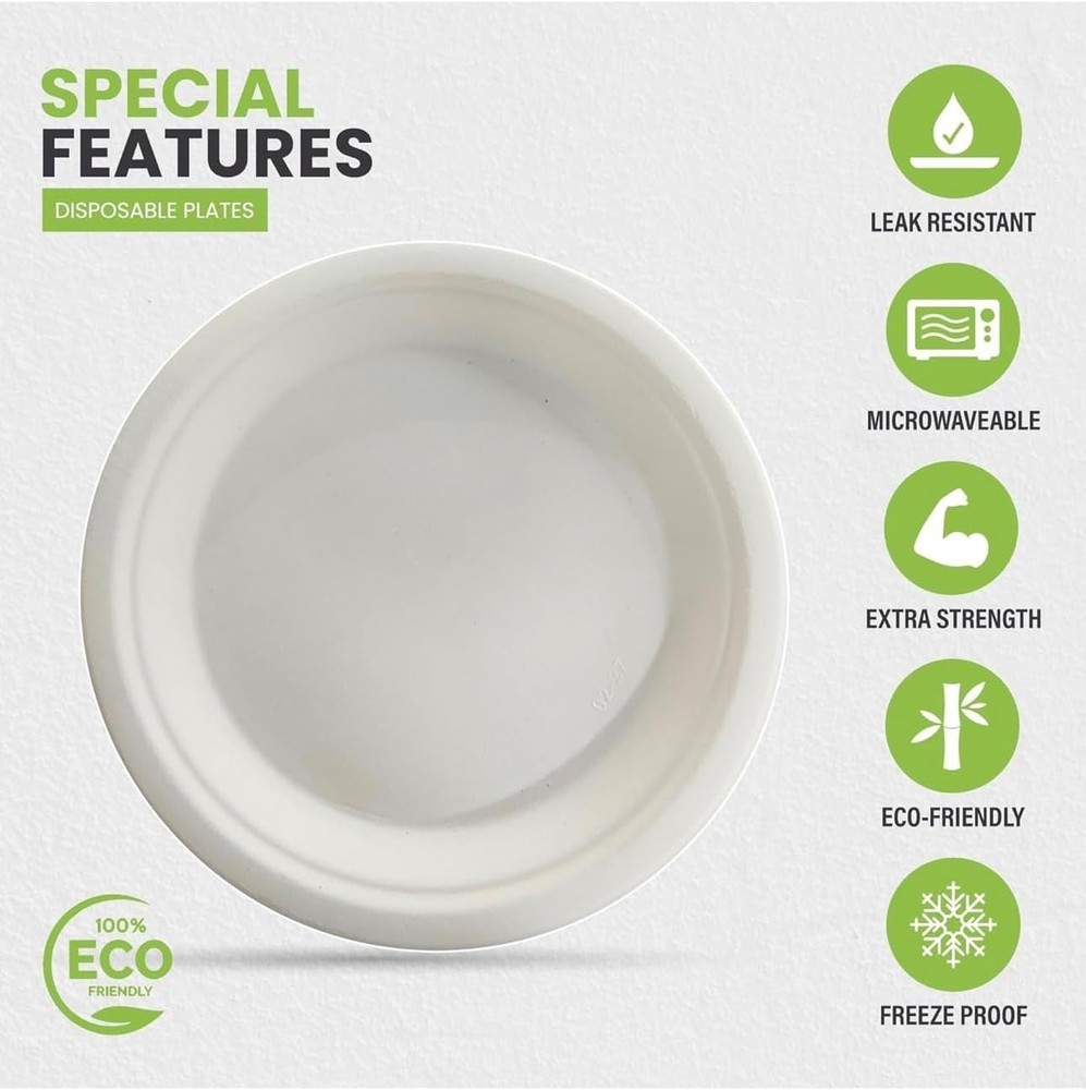 $ 56.831000 x 9" Rigid Strong Bagasse Disposable Party Paper Plates Biodegradable