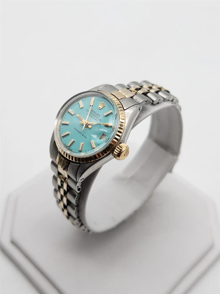 Item Description: 18k Yellow Gold and Stainless Steel. RARE Find and so nice and rare ROLEX DATEJUST. Blue Tiffany & Co dial and mesmerizing. 6.7 inches long and just serviced with a 1 year parts and labor warranty. This is a service that Rolex would charge around $2000 for...you get it for peace of mind at no additional charge. WOW!!! Great looking timepiece and just awesome. RetaiL $12,000. Brand: Rolex Metal: 18k Yellow Gold and SS Movement: AUTOMATIC Gram Weight: 40.2 Powered by SixBit's eCommerce Solution