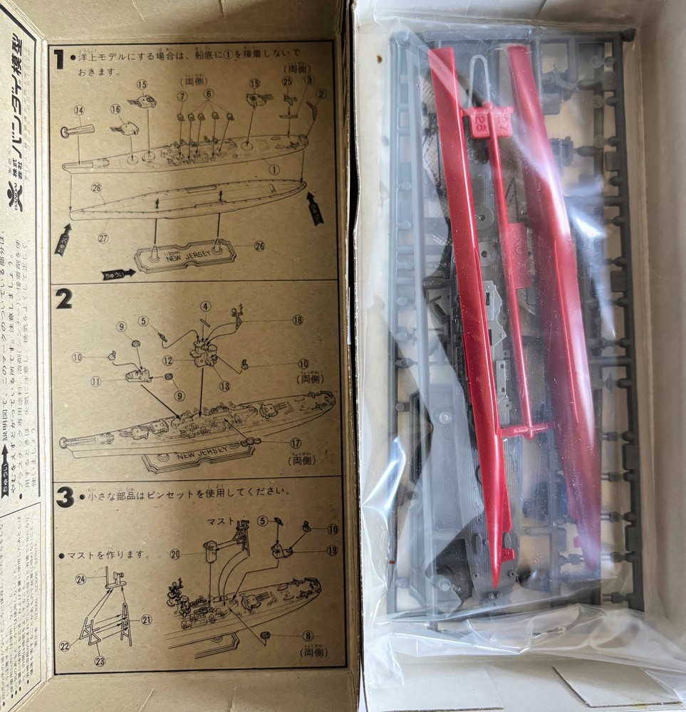 BANDAI No.14 1:2000 MODEL WW2 VIETNAM US NAVY BATTLESHIP USS NEW JERSEY BB-62 BANDAI No.14 1:2000 MODEL WW2 US NAVY BATTLESHIP USS NEW JERSEY BB-62 UNBUILT PLASTIC MODEL KIT NEW-OLD-STOCK NOS NOT STARTED. UNOPENED IN ORIGINAL VENDOR BOX OVP CAN BE BUILT AS EITHER FULL HULL OR AS A WATERLINE MODEL --------------------------------- Additional Information from Internet Encyclopedia USS New Jersey (BB-62) is an Iowa-class battleship and was the second ship of the United States Navy to be named after the U.S. state of New Jersey. She was often referred to fondly as "Big J". New Jersey earned more battle stars for combat actions than the other three completed Iowa-class battleships, and was the only US battleship used to provide gunfire support during the Vietnam War. During World War II, New Jersey shelled targets on Guam and Okinawa, and screened aircraft carriers conducting raids in the Marshall Islands. During the Korean War, she was involved in raids along the North Korean coast, after which she was decommissioned into the United States Navy reserve fleets, better known as the "mothball fleet". She was briefly reactivated in 1968 and sent to Vietnam to support US troops before returning to the mothball fleet in 1969. Reactivated once more in the 1980s as part of the 600-ship Navy program, New Jersey was modernized to carry missiles and recommissioned for service. In 1983, she participated in US operations during the Lebanese Civil War. New Jersey was decommissioned for the last time in 1991 after having served a total of 21 years in the active fleet. During her career she earned a Navy Unit Commendation for service in Vietnam, and 19 battle and campaign stars for combat operations during World War II, the Korean War, the Vietnam War, the Lebanese Civil War, and service in the Persian Gulf. After a brief retention in the mothball fleet, she was donated to the Home Port Alliance in Camden, New Jersey, and has served as a museum ship there since 15 October 2001. FREE scheduling, supersized images and templates. Get Vendio Sales Manager. Make your listings stand out with FREE Vendio custom templates! FREE scheduling, supersized images and templates. Get Vendio Sales Manager. Over 100,000,000 served. Get FREE counters from Vendio today!