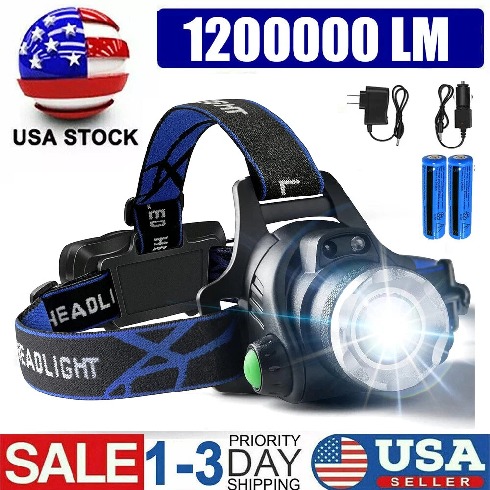 1200000lm Super Bright LED Headlamp USB Rechargeable Headlight Flashlight Torch