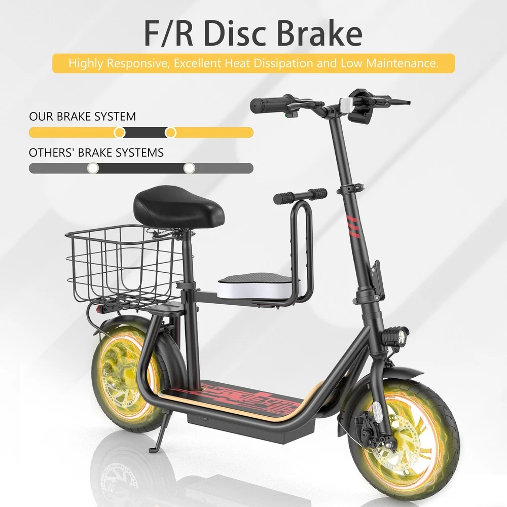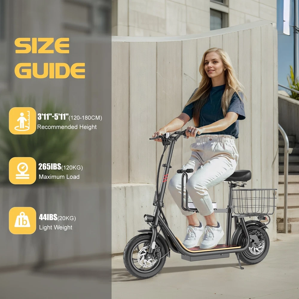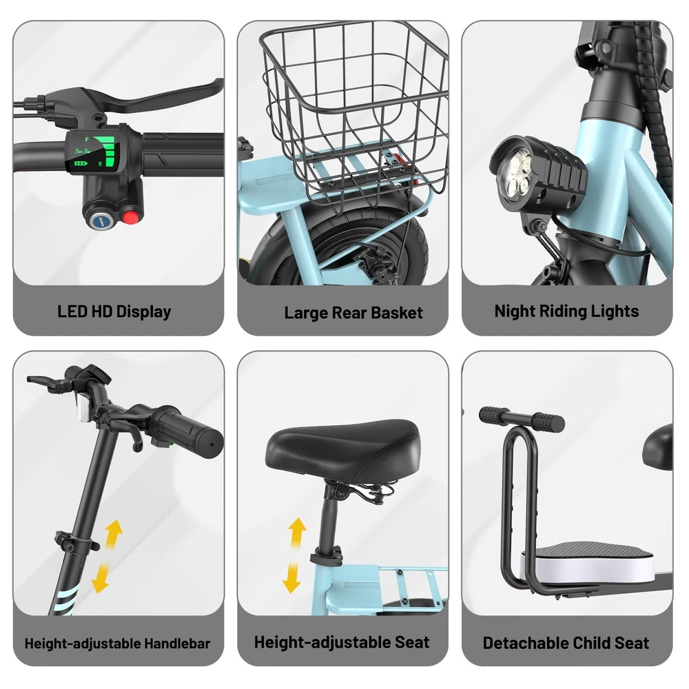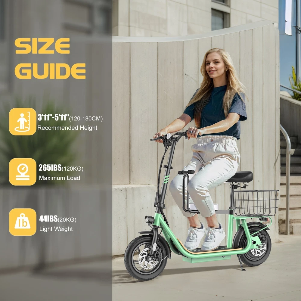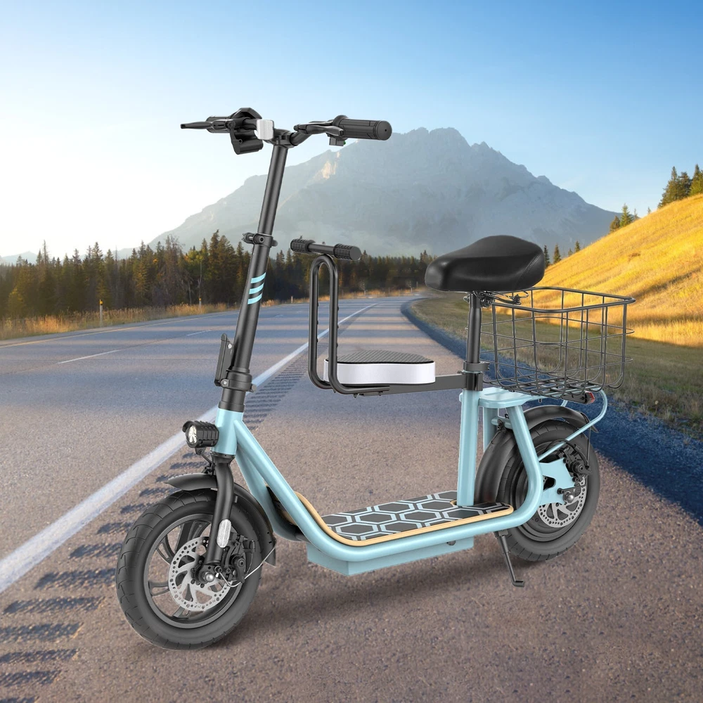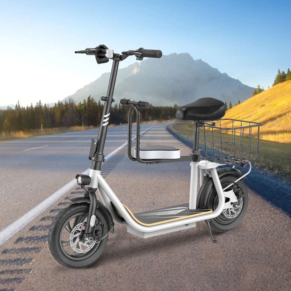 This electric scooter is a game-changer! The powerful 1200W motor makes commutes effortless, and the foldable design is super convenient. The added child seat and basket make it perfect for family trips or quick errands—super stable and safe. Love the non-slip handles for my little one. Super smooth ride, great battery life, and easy to store. Definitely worth it!