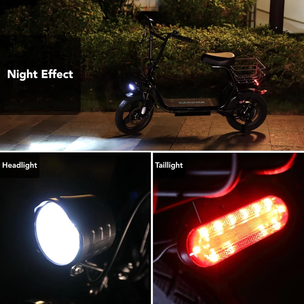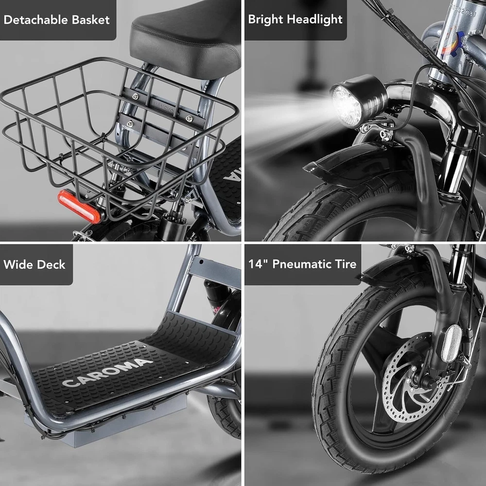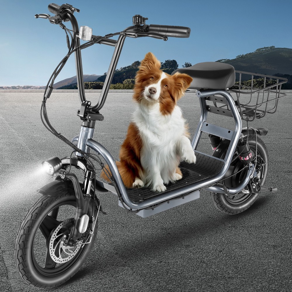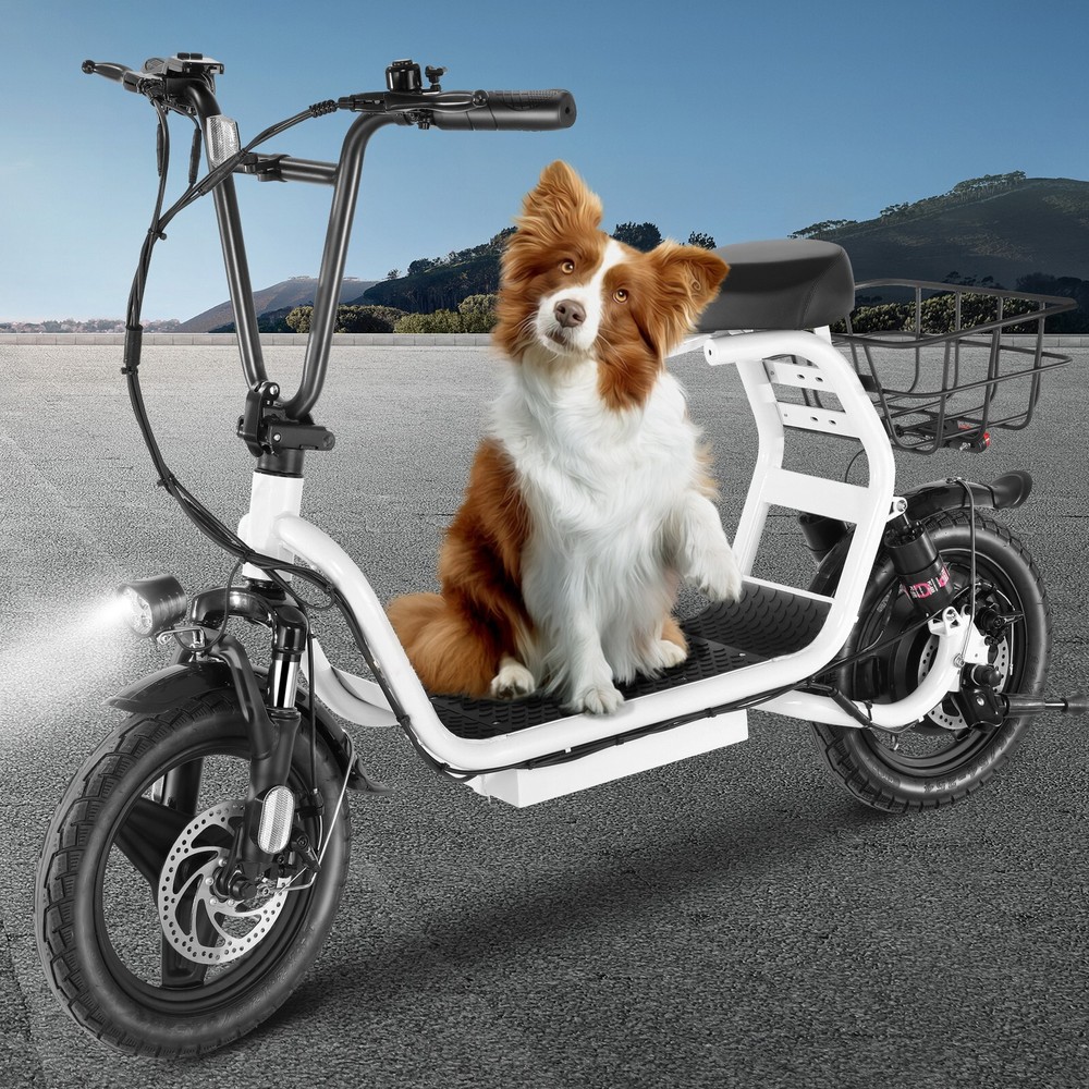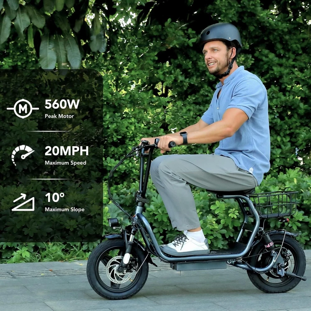 Product Description About this item 【1200W Electric Scooter & 48V 10Ah Battery】adult electric scooter comes with a 750W powerful motor(peak to 1200W) that delivers max speeds of up to 20 mph and a 20% hill grade climbing ability. The large capacity 48V lithium battery with regenerative braking gives you a range of up to 30 miles, which is ideal for anyone who wants to commute short distance for school or office and give the adults an active lifestyle. 【Multiple Suspension and 14" Fat Tires】The e scooter comes with multiple shock absorptions (front, rear suspension, and seat shock) that significantly reduce shock, making your ride more comfortable and stable. The 14" large pneumatic tires have excellent grip, high elasticity, and wear resistance. Meanwhile, this adult scooter comes with a large, soft seat and an extra-wide non-slip deck to make long rides a breeze. 【Foldable & Safe Electric Scooter Adults】This motorized scooter has folding design for increased portability and safety features like responsive and effective dual drum braking systems, bell, headlight and red tail-light, making it a portable electric scooter for commuting. It also has durable one-piece wheel hubs and a high-strength steel frame with a good weight capacity. The compact folded size makes it easy to store in car trunks and other tight spaces. (NOTE: Max load 300lbs) 【Smart Electric Scooter with Seat】 The P5 is an electric commuter scooter designed for adults. It has a basket above the rear wheels and can carry up to 30 pounds, making it ideal for quick errands and shopping. This electric scooter also features an LCD display that clearly shows the real-time power level of the ride. Meanwhile, the handle-mounted throttle allows you to control your riding speed easily and precisely. Electric Scooter with Seat & Basket The adult electric scooter is versatile and convenient, making it suitable for riders of different ages and experience levels.