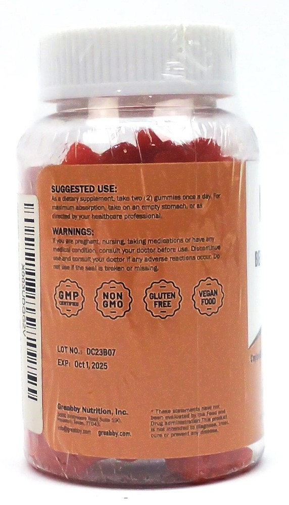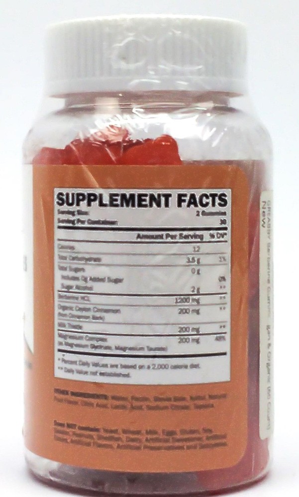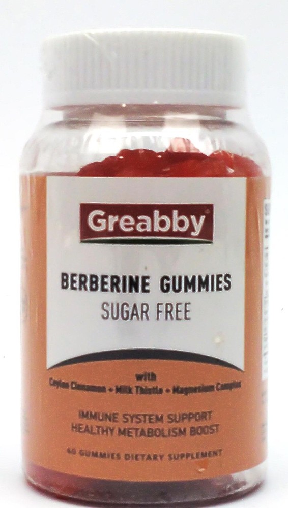Active Ingredients: Berberine Brand: Greabby Type: Supplement Main Purpose: Immune Support, Metabolism Support Expiration Date: 10/01/2025 Features: Non-GMO, Sugar-Free, Gluten-Free, GMP Certified, Vegan Formulation: Gummy Department: Unisex Number of Pills: 60 Ingredients: Berberine, Ceylon Cinnamon, Milk Thistle, Magnesium Complex