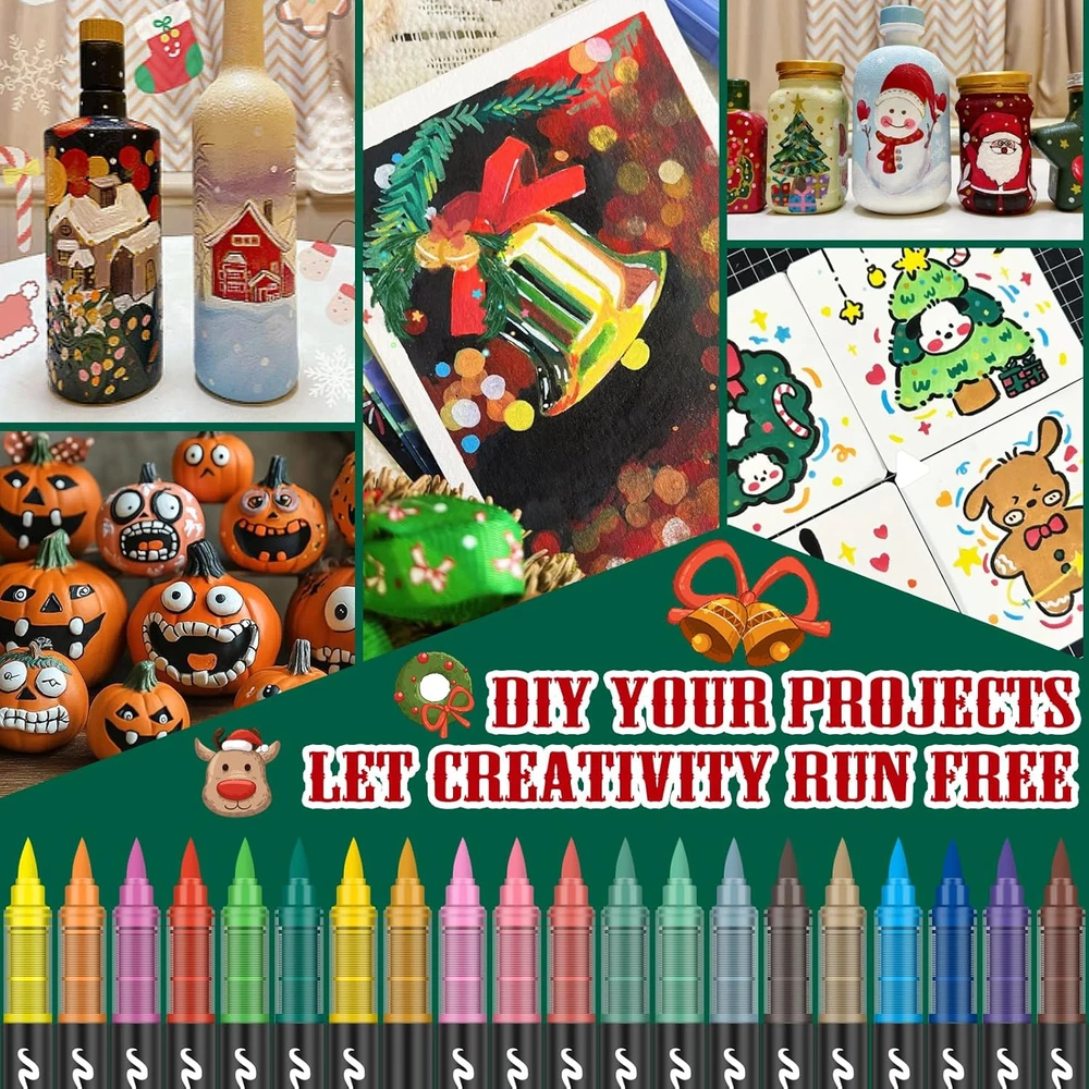 24 Dual-Tip Acrylic Paint Markers in 24 Vibrant Colors for Stone & More