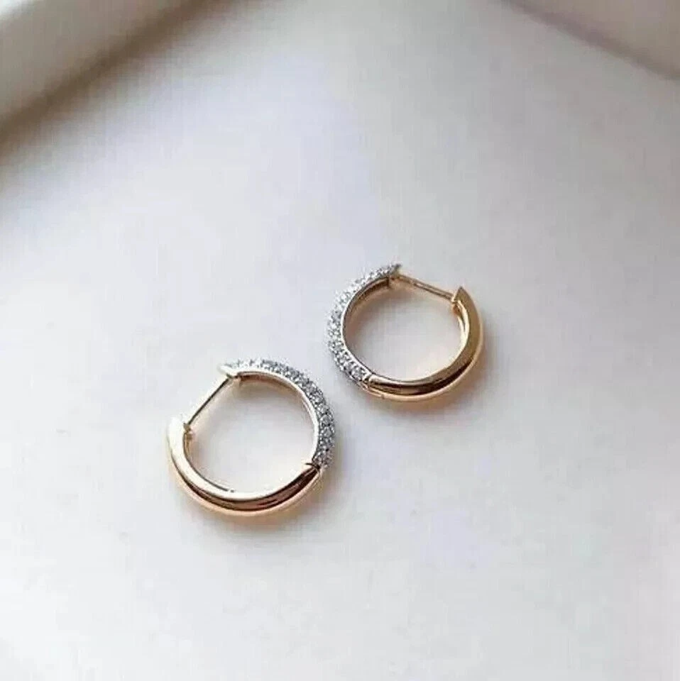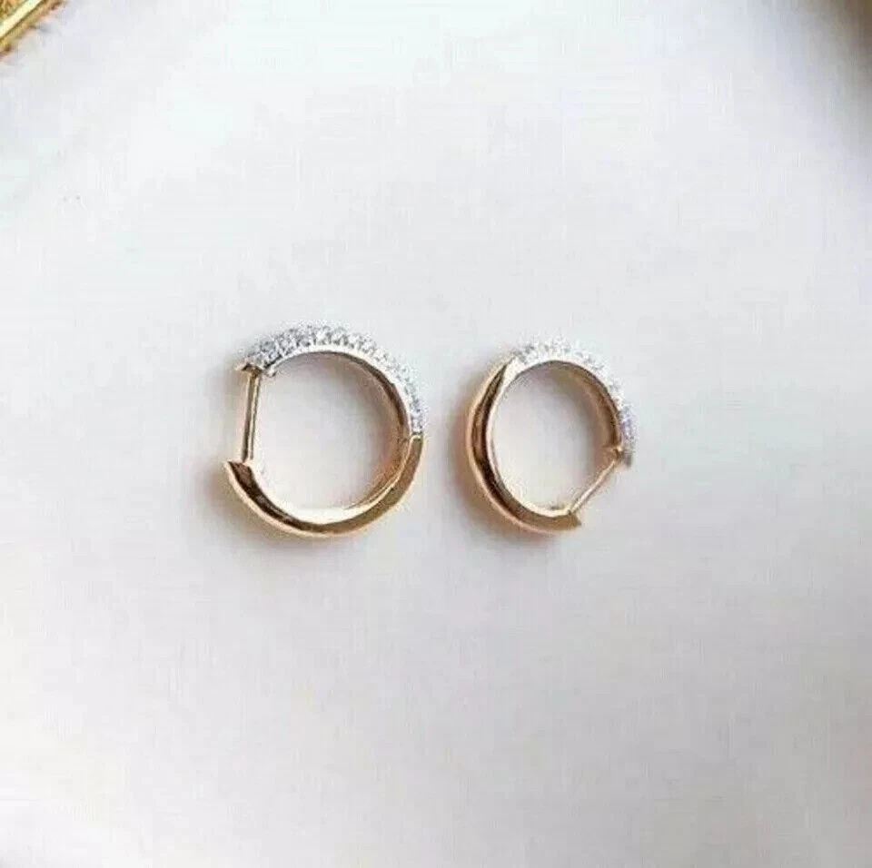 1.20Ct Round Cut Moissanite Hoop Huggie Earrings 14K Yellow Gold Plated Silver