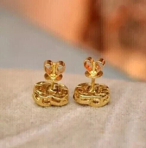 1.20Ct Round Cut Simulated Diamond Fancy Stud Earrings In 14K Yellow Gold Plated