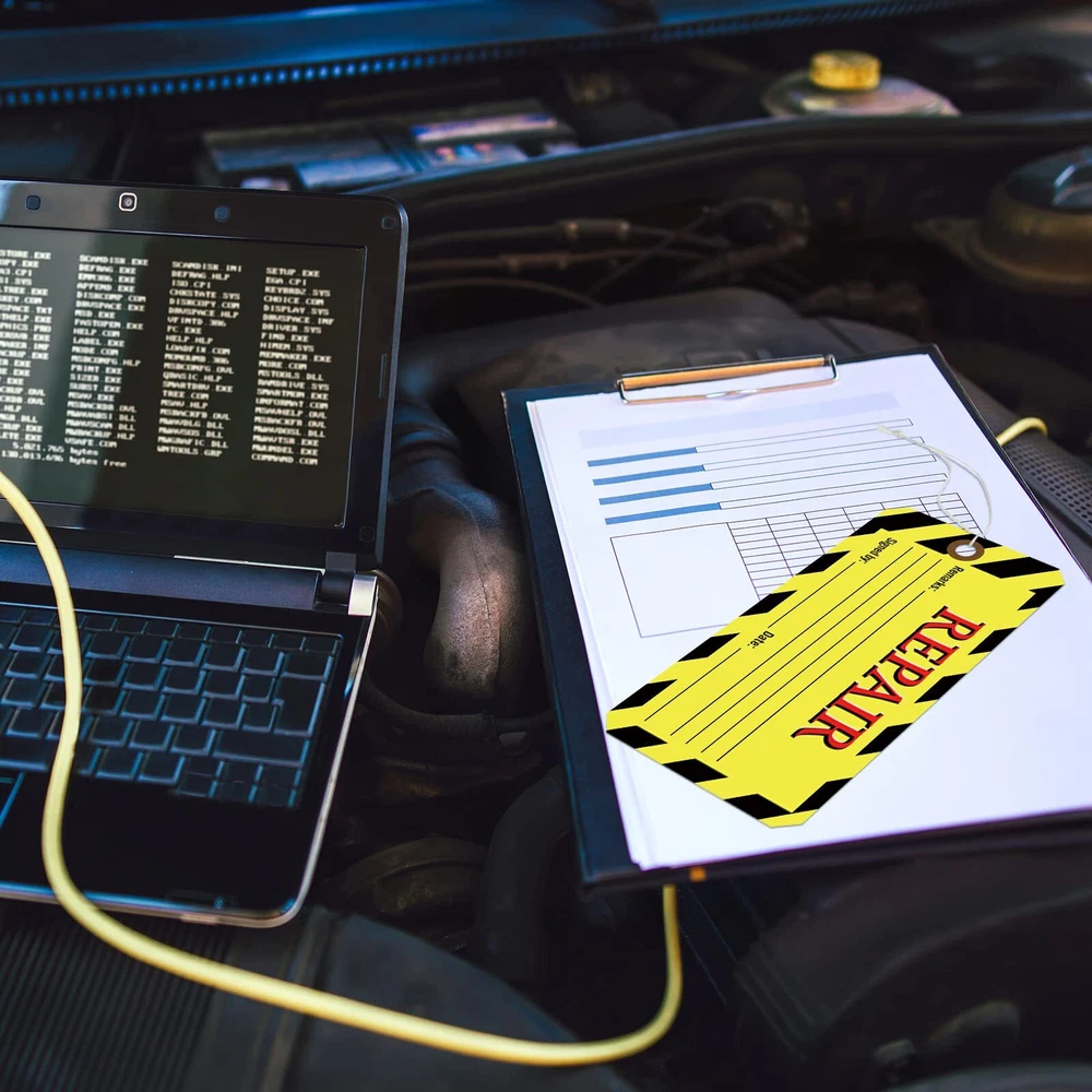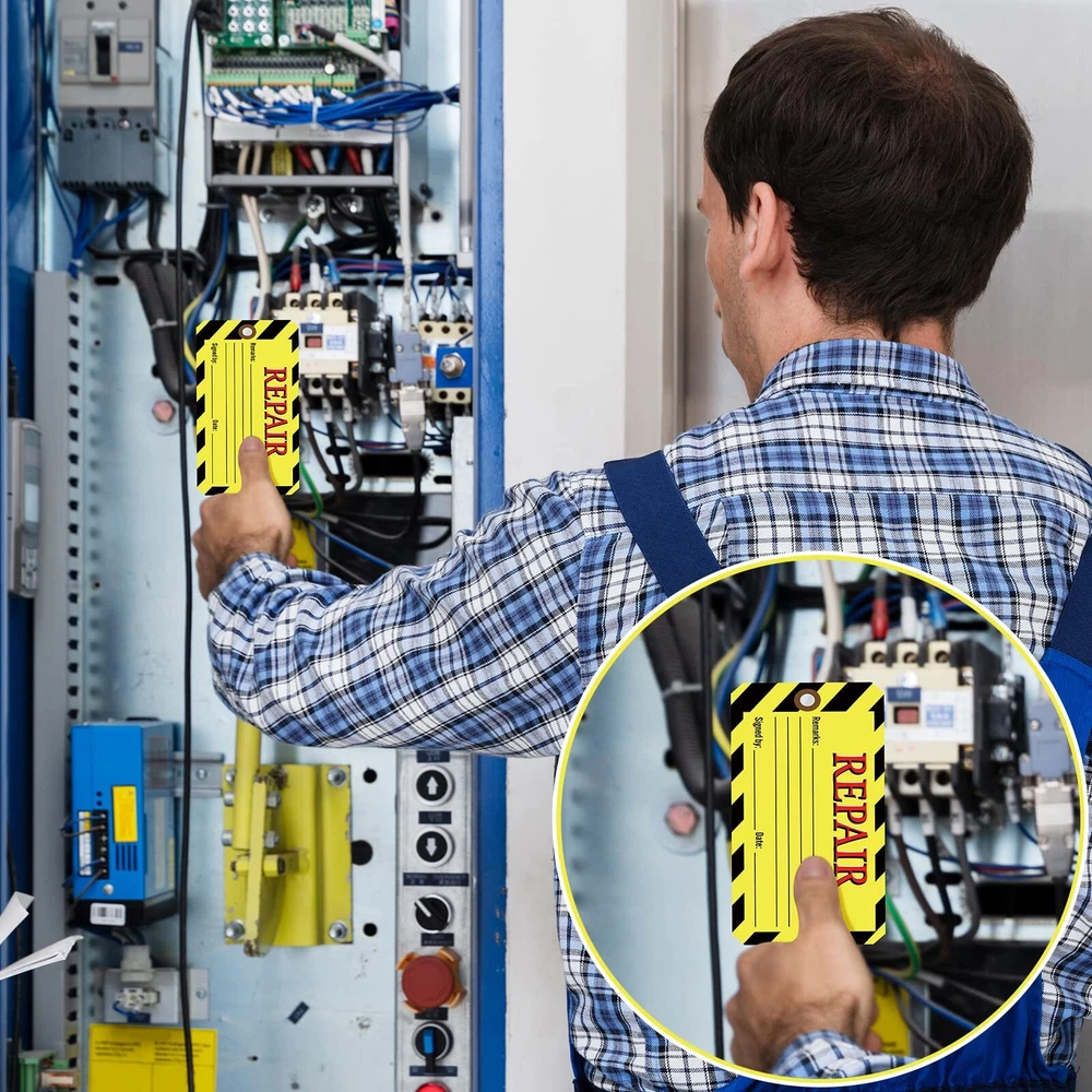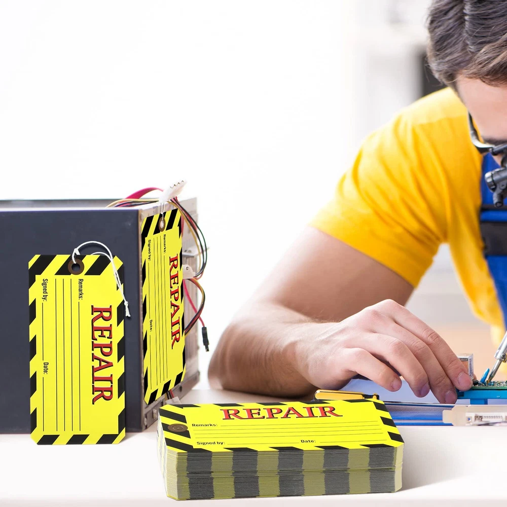 120PCS Repair Tags with Cotton String Yellow Maintenance Control Tags