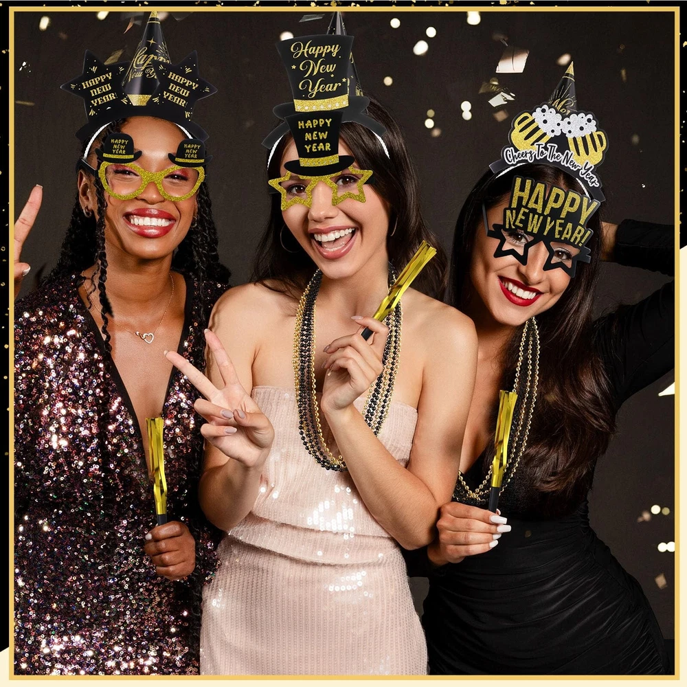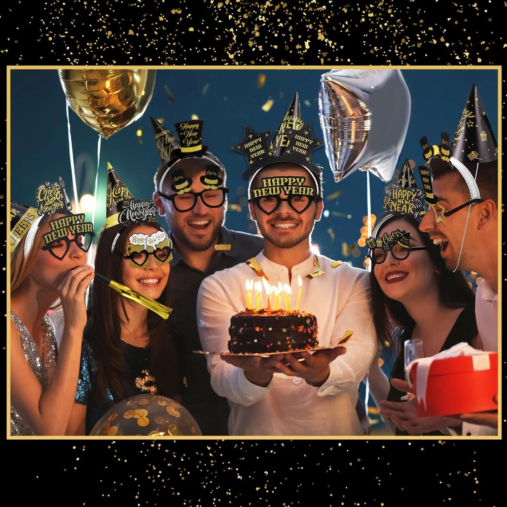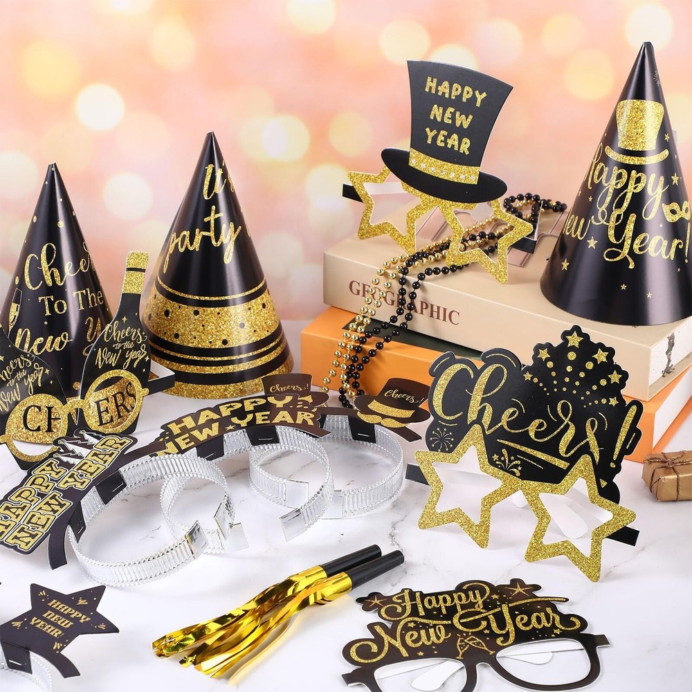 120 Pcs New Years Eve Party Supplies 2025 for 24 Guests 2025 Glasses Happy New Year Headband Paper Cone Hats Noise Makers Bead Necklace for New Year Party Favor(Black Gold,Cute Style) Product Details Color: Black Gold Style: Cute Style Brand: Gemscream MPN: TIY-Gemscream-0014 UPC: Does not apply EAN: Does not apply Color: Black Gold Material: Glass, Paper Brand: Gemscream Occasion: New Year Manufacturer: Gemscream Color: Black Gold Material Type: Glass, Paper Age Range Description: Adult Manufacturer: Gemscream Brand Name: Gemscream Occasion: New Year New Years Eve Party Supplies 2025: package includes 24 pieces of 2025 glasses in 12 styles, 24 pieces of New Years Eve party headbands 2025 in 12 styles, 24 pieces of New Years Eve hats 2025 in 12 styles, 24 pieces of noise makers party favors, and 24 pieces of bead necklaces respectively in gold and black; With a total of 120 pieces, this set of happy New Year decorations 2025 is ample for a group of 24 people, making it an ideal choice for large gatherings New Year Designs: incorporating classic New Year's Eve elements, these happy New Years party supplies stand out with their celebratory words, as well as black, silver gold with glitter design; These items are not only eye catching and festive but also lend an air of class and sophistication to your New Year's Eve party Lightweight and Comfortable: these New Year's Eve party supplies 2025 are meticulously crafted with reliable materials to ensure quality and durability; The glasses, headbands, and hats are made of thick paper, while the blowouts and necklaces are made of plastic, they are lightweight and suitable for long hours of celebration, ensuring the comfort and durability necessary for an unforgettable celebration Size Information: these New Years party favor come in carefully sizes that fit most guests comfortably; The 2025 New Years glasses measure approx. 5.91 x 3.94 inches/ 15 x 10 cm, the headbands are 7.09 x 4.33 inches/ 18 x 11 cm, the hats are 5.91 inches/ 15 cm in diameter and 7.87 inches/ 20 cm in height, the blowouts are 6.69 inches/ 17 cm long, and the necklaces have a circumference of 31.5 inches/ 80 cm Versatile and Multipurpose: these happy New Year decorations 2025 are not only ideal for New Year's Eve festivities, also serve as gifts or photo props; They are suitable for Christmas, holiday parties, family gatherings, friends gatherings, anniversaries, role playing parties, birthday parties, dances, masquerades, carnivals, and more Features: These New Years party favors come in an appealing blend of black, silver and gold, they are designed to be shiny and create a cheerful atmosphere. The sparkling color scheme brings the excitement of the New Year Eve and adds a touch of class to your gathering. These happy New Year decorations 2024 are also ideal gifts for your friends, family members, colleagues and other people, you can wear them to take photos together, leaving unforgettable memories. Specifications: Material: Glasses, headbands, and hats: thick paper Blowouts and necklaces: plastic Color: black, silver, gold Size: Glasses: approx. 5.91 x 3.94 inches/ 15 x 10 cm Headbands: approx. 7.09 x 4.33 inches/ 18 x 11 cm Hats: approx. 5.91 inches/ 15 cm in diameter and 7.87 inches/ 20 cm in height Blowouts: approx. 6.69 inches/ 17 cm long Necklaces: approx. 31.5 inches/ 80 cm in circumference Package includes: 24 Pieces of 2024 glasses 24 Pieces of New Years Eve party headbands 2024 24 Pieces of New Years Eve hats 2024 24 Pieces of noise makers party favors 24 Pieces of bead necklaces Notes: Manual measurement, please allow slight errors on size. The color may exist a slight difference due to different screen displays. Winding risk and small items may exist, please keep our product away from children.