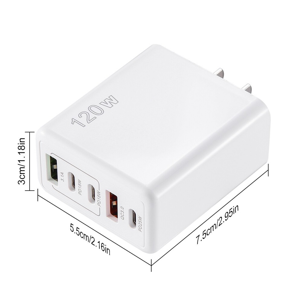 120W 5 Ports PD Type C+QC3.0 Super Fast Wall Charger Adapter for iPhone Samsung Feature: 1. Multi-port design: The charger is equipped with three PD fast charging ports and two USB charging ports, which supports charging five devices at the same time, which greatly improves the charging efficiency. 2. Fast charging technology: Two PD25W ports and one QC3.0 port support fast charging function, up to 25W fast charging power, so that your mobile phone can be fully charged in a short time. 3. Intelligent shunt: When multiple interfaces are used at the same time, the charger will intelligently tap to ensure that each interface can get stable current and voltage, and avoid damage to the device due to overcurrent or overvoltage. 4. Strong compatibility: It not only supports PD and QC fast charging protocols, but also is compatible with a variety of other fast charging protocols to ensure that all kinds of devices can get an efficient charging experience. 5. Safety protection: The charger has multiple built-in safety protection mechanisms, including over-current protection, over-voltage protection, over-temperature protection, etc., to ensure your safety during charging. 6. Portable design: Compact size and light weight, it is convenient for you to carry it anytime and anywhere, whether it is a business trip, travel or daily use, it can easily meet your charging needs. How to Use: When you only need to charge one device, you can choose any fast charging port or normal charging port, and the charger will not be shunted to ensure a stable current for the device. When you need to charge multiple devices at the same time, you can plug the devices into different charging ports separately, and the charger will automatically intelligently split to ensure that each device can be charged stably. Specification: Input voltage: AC110v-240v 50/60Hz 0.5A 18W/18W/3.1A: It does not support fast charging, and is a normal charging port PD25W port/QC3.0: fast charging port, When multi-port is used, it is shunted, and single-port is used without shunt QC3.0 output (MAX): 5V/7.2A, 9V/4.0A, 12V/3.0A Output power: 18W PD Max Output: 25w Package: 1 X 120W Fast Charger Delivery details Payment Terms of sales Feedback Contact us Delivery details 1. BUSINESS DAY MONDAY- FRIDAY FAST SHIPPING FROM USA. 2. All orders and payments received before 4PM EST (1PM PST) will be shipped the same business day. 3. No shipping on Saturday,Sunday or USA Public Holidays 4. No responsibility for any custom duty Payment We accept payment by PayPal only. Terms of sales 1. We offer a 60 day money back guarantee or exchange. 2. Buyer pays return shipping and we pay replacement shipping. 3. If you want to initiate a return,please contact us to get a returning address before sending the item back. Feedback 1. We strive to provide the best products and services. 2. Your positive feedback 5 stars DSR help us do better. 3. If anything about your transaction did not meet expectations, please CONTACT US and give us the opportunity to make things right. We are always here to help. Contact us Please do not hesitate to CONTACT US . You can message 24/7 on eBay for all questions and inquiries. We will get back to you within one business days at the latest from Monday- Friday.