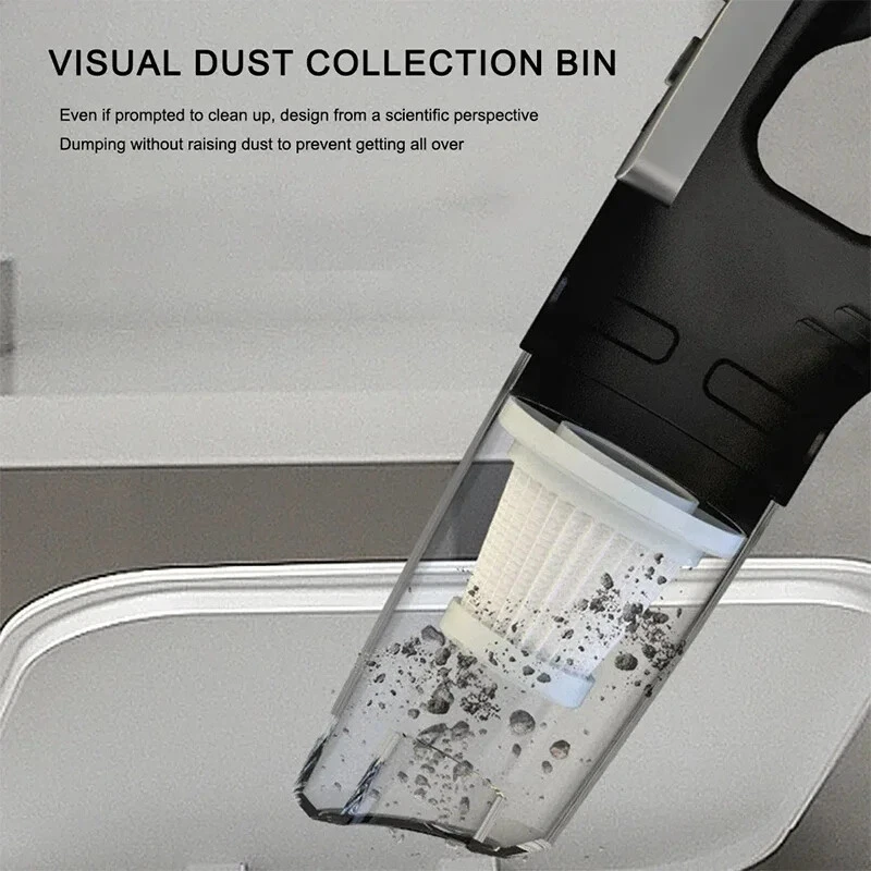 120W Car Vacuum Cleaner Wireless Portable Cordless Vacuum Cleaner USB Charging High Power Suitable for Car Home Pet Hair Features: [powerful motor and lightweight design] This car vacuum cleaner features a powerful motor that provides impressive suction while maintaining a lightweight design. It effortlessly sucks up dust and stubborn pet hair, making it perfect for keeping your car clean. The cordless design ensures convenient maneuverability, allowing even children to easily get to grips and clean with it. [high-capacity battery] The cordless car vacuum cleaner is equipped with a built-in high-capacity battery that provides extended runtime. The USB charging cable allows you to charge it anywhere with a USB port, making it convenient to charge in your car or on the go. [Advanced washable filter] This handheld cordless vacuum cleaner is equipped with a premium washable filter, ensuring efficient filtration and preventing clogging. Simply remove the filter from the dust collection box, rinse it with water and leave it to dry for future use. This saves money on replacement filters and guarantees long-lasting performance. [Multiple nozzles for versatile cleaning] The portable handheld vacuum comes with a variety of nozzles. You can customize these attachments to suit different cleaning needs, helping you achieve deep, professional cleaning results for your car. Whether it's tight corners, upholstery or hard-to-reach areas, this vacuum cleaner has you covered. [Portable and compact] With its compact size and ergonomic design, this wet-dry vacuum cleaner is easy to store in your car and transport. It takes up minimal space while providing maximum cleaning power. Whether you're on a trip, dealing with everyday messes, or preparing for special occasions, this handheld vacuum cleaner is your go-to cleaning companion. Specification: Function: Sweeping Suction Power (W): 120W Voltage (V): 6V Product noise: ≤ 50db Charging method: USB smart fast charging Shell material: Lightweight ABS Product power: 120W Product battery: large capacity lithium battery Application scenario: vehicle/home use This size is measured manually, there may be some errors, please understand. Note: Due to different monitor and light effect, the actual color of the item may be a little different from the color shown in the pictures. -Thank you! Please allow 1-2cm measurement deviation due to manual measurement.
