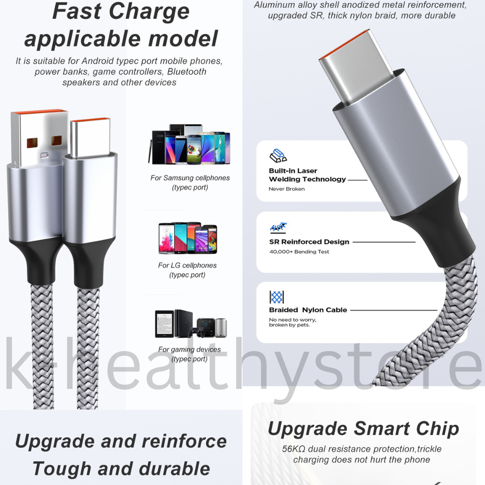 USB-A to USB-C 6A 120W Fast Charging Cable High-Quality Charging & Data Transfer Power up your devices with this high-performance USB-A to USB-C cable, designed for super-fast 6A / 120W charging and efficient data transfer. Built with durable braided nylon and reinforced connectors, this cable ensures long-lasting use and optimal performance for all your Type-C devices. β‘ Key Features: Super Fast 6A / 120W Charging: Supports ultra-fast power delivery for rapid charging of compatible devices. USB-A to USB-C Connectivity: Compatible with a wide range of smartphones, tablets, and other devices. Durable Braided Nylon: Wear-resistant, tangle-free design for long-lasting performance. Enhanced Copper Core: Ensures stable power transmission and high-speed data transfer. Reinforced Connectors: Designed to resist bending and breaking for extended durability. Length: 6ft β perfect for everyday use. π± Compatibility: Smartphones: Samsung Galaxy S24, S23, S22, S21, S20, Note 20, Note 10, Google Pixel 8, 7, 6, OnePlus 12, Xiaomi 14, 13, 12. Tablets: iPad Pro, iPad Air, iPad Mini (USB-C models only). Laptops: MacBook (USB-C models), Lenovo ThinkPad, HP Spectre, Dell XPS (USB-C powered devices). Other Devices: Power Banks, Car Chargers, Nintendo Switch, and more. π¦ Package Includes: 1 x USB-A to USB-C Fast Charging Cable (6ft ) with Premium Nylon Braided Exterior π‘ Why Choose This Cable? Ultra-Fast Charging: Supports up to 120W for lightning-fast power delivery. Reinforced Durability: Braided nylon and strong aluminum connectors resist wear and tear. Universal Compatibility: Works with a variety of Type-C devices for charging and data transfer. π Warranty & Customer Support: β We provide a warranty for our product. β If you have any questions, please contact us via eBay. Our team will respond promptly to assist you. π Shipping & Returns: β Fast shipping from our USA warehouse. β 30-day return policy for peace of mind. Order now and experience high-speed charging with a reliable, durable USB-A to USB-C cable! β‘