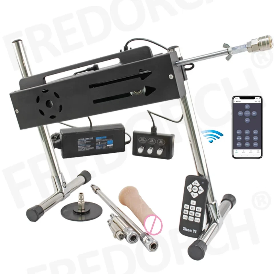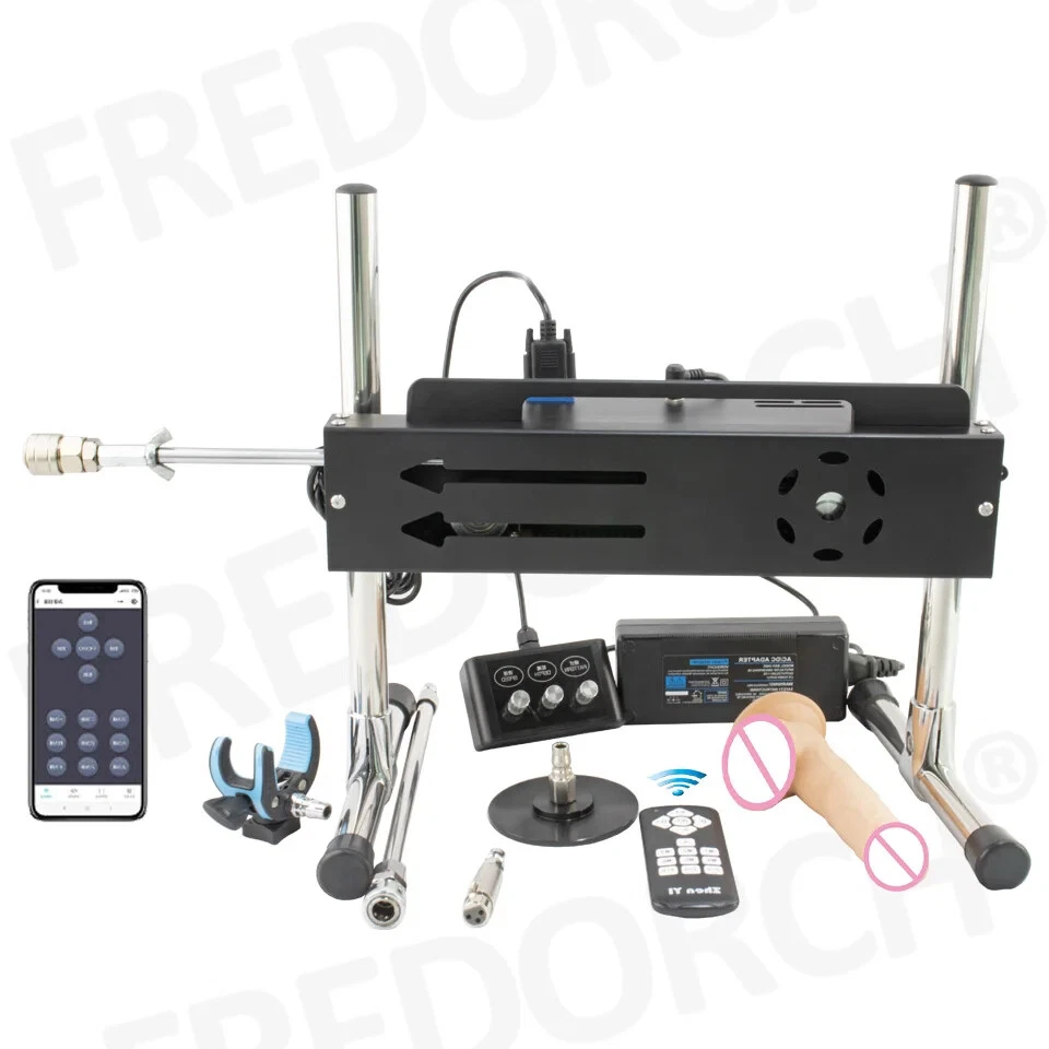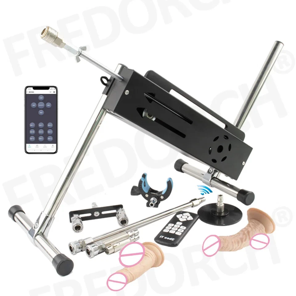 Sex Machines F21S Product parameter Motor model: 1.5 Nm servo motor; Pulling distance and speed: 0-30 times per second, 1-15cm adjustable; Output: 36V safety voltage; Input: 100-230V universal; Packing size: 55*26*24cm; Noise level: 10-60 decibels; Product weight: 9KG Product material: metal material ***F21S have wired Control and Remote Control and APP Control (99% of mobile phones support) 120w F22 just have Remote Control 80w F21S machine;Parcel Including below items 1 * Main Machine Body 2 * T - Bar (Frame Support) 1 * Rod with "Quick Connecter" (Support two Rod --need to buy) 1 * Power Supplier Set (Plug same as your country) 1 * Remote Controller (or wireless Control Version)with APP Control ( Wired Controller about 60$ need buy You can choose among the packages for a better deal ) Two versions: 1.Wired plus wireless APP : have wireless with APP Control and Wired Controller; (99% of mobile phones support) 2.APP plus wireless :just have wireless with APP Controller (99% of mobile phones support) If you don't confirm whether your phone supports APP, please don't buy it. Note:Pack the accessories according to the picture, see how many accessories in the picture, you have the relative number of accessories Four highlights: 1. Remote control: ultra-long-distance control without dead ends, no need to control infrared to the machine, compact appearance and easy to use; 2. Mobile phone control: WeChat applet Bluetooth link is convenient and fast, universal Android and Apple systems, 99% of mobile phones on the market can be used! 3. Wired controller: connected to the host via a wired plug-in connector. The rotary adjustment mode can control the machine mode, speed and distance in real time, which is easy to use and convenient to operate; 4. Motor: Servo motor is expensive. Compared with turbo gear motor, it has low energy consumption and high output, and the torque is not affected by speed Package " Wired wireless APP a " Include (What's in the box) 1 X Wired Speed Controller Package " APP wireless G " Include (What's in the box) Package " APP wireless V " Include (What's in the box) Package " Wired wireless APP f " Include (What's in the box) 1 X Wired Speed Controller Package " Wired wireless APP e " Include (What's in the box) 1 X Wired Speed Controller Package " APP wireless H " Include (What's in the box) Package " Wired wireless APP b " Include (What's in the box) 1 X Wired Speed Controller Package " APP wireless A " Include (What's in the box) Package " APP wireless B " Include (What's in the box) Package " Wired wireless APP c " Include (What's in the box) 1 X Wired Speed Controller F21S SEX MACHINE SHOW ***Can be used with two poles, multi-angle insertion, speed can be adjusted at any time