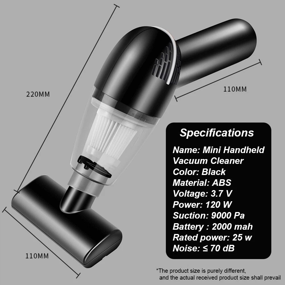 DescriptionFeatures100% Brand new and high quality.Light to 0.365KG, ergonomic design, the motor and battery back at the handle to maintain the balance of gravity, and lightweight design, long time handheld won't be tired, let cleaning become a pleasure.Efficient vacuuming experience for multi-scene application, 120w large suction power, car/home/office/crevice corners easy to cope with, can clean up keyboard crevices, localized floors, sofas, bookshelves.Large-capacity lithium battery 45 Min lasting battery life. 2000 mAh battery 2 sections linkage Continuous use more than 45 minutes Wireless model to get rid of the trouble of wire winding. Please fully charge it before use.Multi-purpose electric compressed air duster and vacuum cleaner-applicable to va... Electronicsrepair-h Best store 120W Rechargeable Mini Cordless Wireless Handheld Vacuum Cleaner Car Home 3 in 1 Description Features 100% Brand new and high quality. Light to 0.365KG, ergonomic design, the motor and battery back at the handle to maintain the balance of gravity, and lightweight design, long time handheld won't be tired, let cleaning become a pleasure. Efficient vacuuming experience for multi-scene application, 120w large suction power, car/home/office/crevice corners easy to cope with, can clean up keyboard crevices, localized floors, sofas, bookshelves. Large-capacity lithium battery 45 Min lasting battery life. 2000 mAh battery 2 sections linkage Continuous use more than 45 minutes Wireless model to get rid of the trouble of wire winding. Please fully charge it before use. Multi-purpose electric compressed air duster and vacuum cleaner-applicable to various scenarios: you can remove crumbs, hair and dust from your computer, keyboard, sofa, air conditioner, camera lens or car. Note: This product is only suitable for workng in dry environment, do not use in wet anvonment. Please check the dust cup regularly, if there is mare garbage in it please clean it up in time, keep the ventilation aperture unblocked to avoid the obstruction caused by suction drop, motor heat, reduce the service life of hand-held wire vacuum cleaner. Specifications Name: Mini Handheld Vacuum Cleaner Color: Black Material: ABS Voltage: 3.7 V Power: 120 W Suction: 9000 Pa Battery : 2000 mah Rated power: 25 w Noise: ≤ 70 dB Package Content 1x Mini Vacuum Cleaner 1x AUXILIARY Nozzle 1x Nozzle 1x Nozzle Brush 1x Filter 1x Charging Cable 1x Manual Item Specifics Brand Unbranded Type Handheld, Desktop Vacuum Cleaner Cord Type Cordless Bagged/Bagless Bagless Features Light Weight Carpet Cleaning Ergonomic Handle Portable Rinsable Filter Rechargeable Battery Included Accessories Charger, Filter, Nozzle Runtime 40 min Charge Time 3 hrs Return Policy Restocking fee: There will be a 15% restocking fee if returning mistakenly order or no longer needed item, read the tips below on how to avoid it. Read the item description carefully instead of only the listing title; Choose the correct item from the drop-down menu (if applicable) before clicking on the add to cart button; If you have any questions regarding the item, please send us a message before purchasing. Installation Fee: All LCD in original condition may be returned within (30) days from the purchase date for a full refund without installation. We highly recommend to our customers to test the LCD and make sure it is fully functioning before installation since the components on the LCD is fragile and can easily be damaged by static electricity or other factors that causes image or touch issues. Depending on the used condition of the LCD, it may be Disqualified for a return or charging a 15% installation Fee. DOA (Dead On Arrival): Take a picture of the outer box if you have received a damaged package, check all the contents inside for any physical damage and send the pictures to us as evidence within 3 Days for a return or refund. LCD Testing Instruction 1.Wear Anti-Static Gloves or a Wrist Strap to release any static electricity before touching the LCD. 2.Check the pins on the flex cable connector to see if any of them is bent or missing. 3.Check around the LCD and make sure none of the components are damaged. 4.Check the light reflection on the LCD under a lamp to see if any of the areas have a different color. 5.Connect the LCD and Digitizer/Touch flex cables to your device's motherboard connectors first. *DO NOT install the LCD onto the device BEFORE testing the parts ! 6.Move an icon around on your screen to make sure the display and touch are fully functional. Payment We only accept payment via PayPal. Please make your payment within 5 days after auction ends otherwise a non-payment dispute will be opened. Before purchasing, please make sure that your address is correct. Shipping After receiving your payment, your order will be shipped within 1-2 business days from California via usps. Free shipping is provided in our store. We are not responsible for anything late or lost by USPS. Contact Us We are honest and responsible seller. Customer satisfaction is very important to us and our feedback rating reflects this satisfaction. If you have any questions, Our customer service staffs welcome feel free to contact us by EBAY message box. We strive to answer all questions and resolve any problems as quickly as possible. If your item has any issues, Do NOT leave a Negative feedback without contacting us through eBay first , we will try our best to get it resolved and provide an address for you to return the item once it is qualified. Returns will be processed within (7) business day after receiving the item. Electronicsrepair-h Best store 120W Rechargeable Mini Cordless Wireless Handheld Vacuum Cleaner Car Home 3 in 1 Description Features 100% Brand new and high quality. Light to 0.365KG, ergonomic design, the motor and battery back at the handle to maintain the balance of gravity, and lightweight design, long time handheld won't be tired, let cleaning become a pleasure. Efficient vacuuming experience for