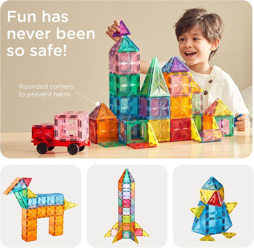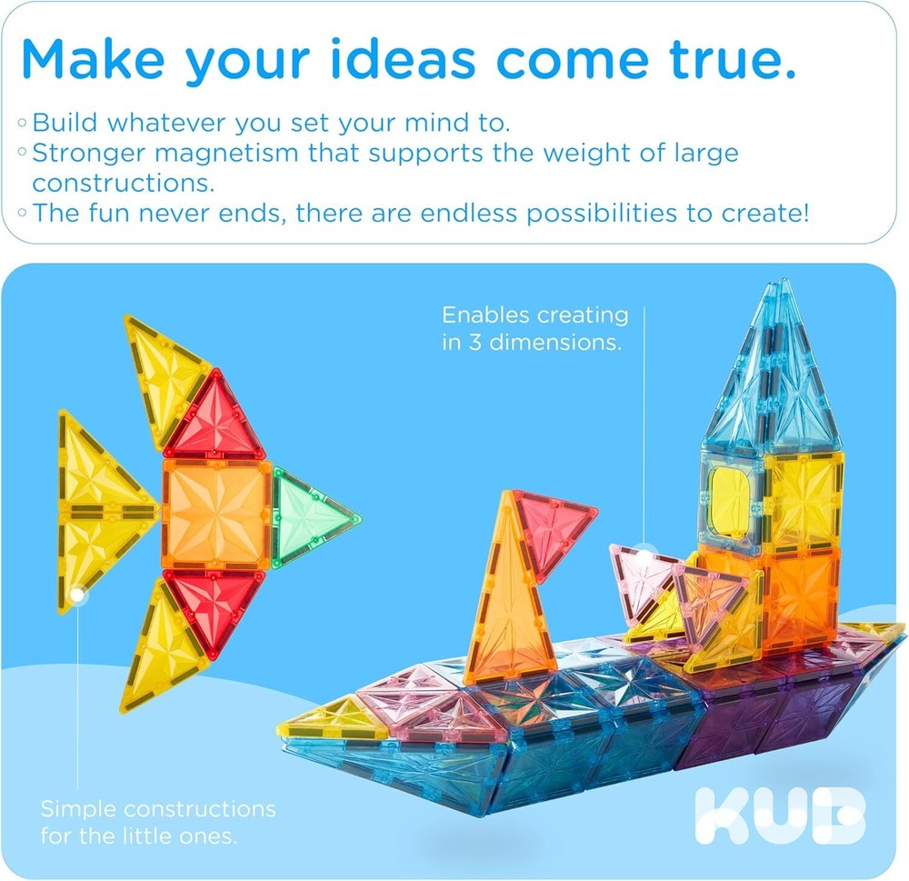 Product Description KUB 121 Pcs Magnetic Tiles Creative Toys, 3D Building Magnet Blocks Set, STEM Educational Kids Gifts for Boys Girls over 3 Years Old, Montessori Preschool Learning 🌸 Fun with Creativity - KUB magnetic tiles bring endless possibilities for open-ended play. Children can create a variety of structures, from simple to complex, fostering creativity and imagination. Additionally, kids can incorporate their creations into imaginative play scenarios, thereby enhancing narrative and language skills. 🌸 Larger Magnet - Stronger magnetism is achieved through bigger and double magnetic blocks in KUB magnetic tiles. This feature ensures a solid stacking and easy connection, promoting the gradual development of babies' self-confidence as they build and play. 🌸 Child-Safe Material - Ultrasonic seamless welding and ABS integrated molding process is applied in KUB magnetic tiles, contributing to a safe play environment with no worries of choking hazards because of no small parts contained. 🌸 Baby's First Enlightener - Constructing structures with magnetic tiles necessitates planning and manipulation, fostering the development of cognitive and fine motor skills, as well as enhancing hand-eye coordination and dexterity. Through hands-on play, children can explore and comprehend basic geometric shapes, symmetry, and spatial awareness. 🌸 Colors in Shapes - Featuring 7 bright and vivid colors and 10 shapes, KUB magnetic tiles stimulate toddlers' sensory development, nurturing their natural curiosity and desire to explore. The vibrant colors and diverse shapes enhance their aesthetic perception, encouraging an appreciation for matching colors and shapes. About Us We are a reputable seller with many years of experience selling on eBay. Our goal is to provide high-quality products and excellent customer service. Payment 1.We accept PayPal only. 2.All major credit cards are accepted through secure payment processor PayPal. 3.Payment must be received within 7 business days of auction closing. 4.We ship to your eBay or Paypal address. Please make sure your eBay and Paypal address is correct before you pay. Feedback will be left automatically after we receive your feedback. Please contact us before leaving a Negative feedback or Neutral feedback. We would try our best to help you solving any problem. Shipping Items will be shipped within 1-3 business days when we received payment. (Orders are not processed on weekends & holidays) Tracking information will be sent once item is shipped. Delivery time depends on destination and other factors Item is shipped to ebay address. Leaving correct address can minimize delay. For international shipping and shipping to Guam, Hawaii and Alaska, Please contact us before placing the order. International buyers please note: Import duties, taxes and charges are not included in the item price or shipping charges. These charges are buyer’s responsibility. We will try our best to reduce the risk of the custom duties. Local pick-up is unavailable at the moment. Returns For any issues with Defects, Return, Item Exchange request, please contact us first and send us a message first before opening any type of case or request. We devote ourselves making EVERY CUSTOMER in 100% Satisfactory and resolve any problem. We highly value and appreciate your business. Thank you. No returns will be accepted without an RMA number. Please contact us for the RMA number. Return is acceptable within 30 days of delivery. Return for replacement or money back is optional. Returned items must be in the brand new, unaltered and resalable condition. Seller is not responsible for any labor cost, expense in a dealer store, or damage due to wrong installation. Contact Us We reply any email messages within 1 business / working days(off-duty at weekend). If you do not get a response from us, then please check your junk or spam mailbox. Our Business hours: Mon-Fri 9:00-18:00, UTC/GMT +8 hour s . Please contact us either by clicking "contact seller" in the "purchase history" section or simply click "ask a question" at the bottom of this page. If you are unsatisfied with our item or service, please contact us before leaving any feedback. We are committed to resolve all issues in a friendly and satisfactory manner. To provide you with better service, please provide the following information in your email: Your ebay ID Order problem, order number For product questions, the eBay article number, the product URL or the product SKU Unfortunately, the eBay guidelines do not allow us to provide a phone number. But if you'd rather call please send us an email.