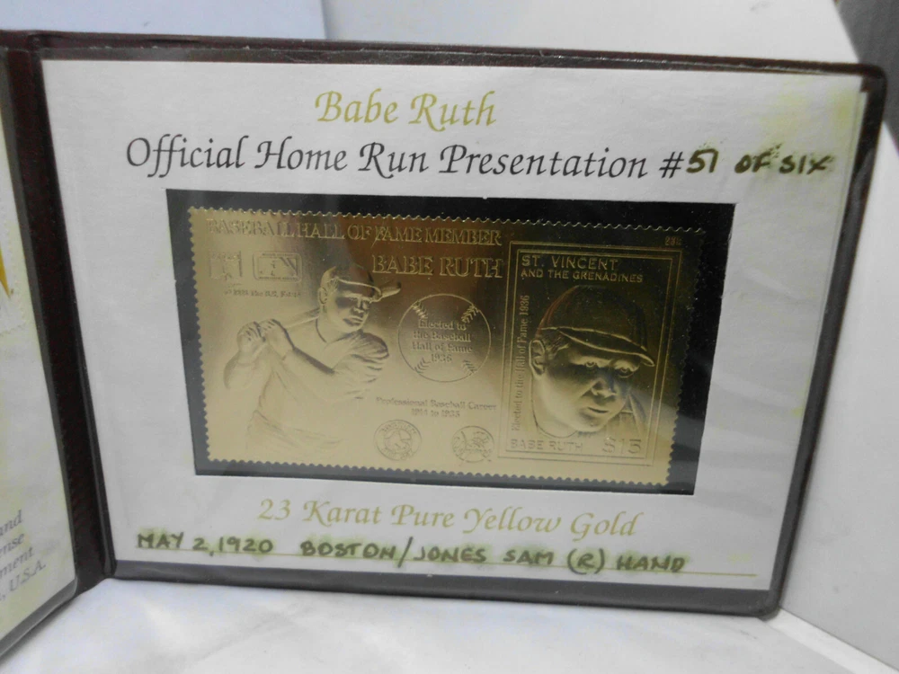 12/15/88 Hall Of Fame Member Babe Ruth Official First Day Home Run Stamp Gold